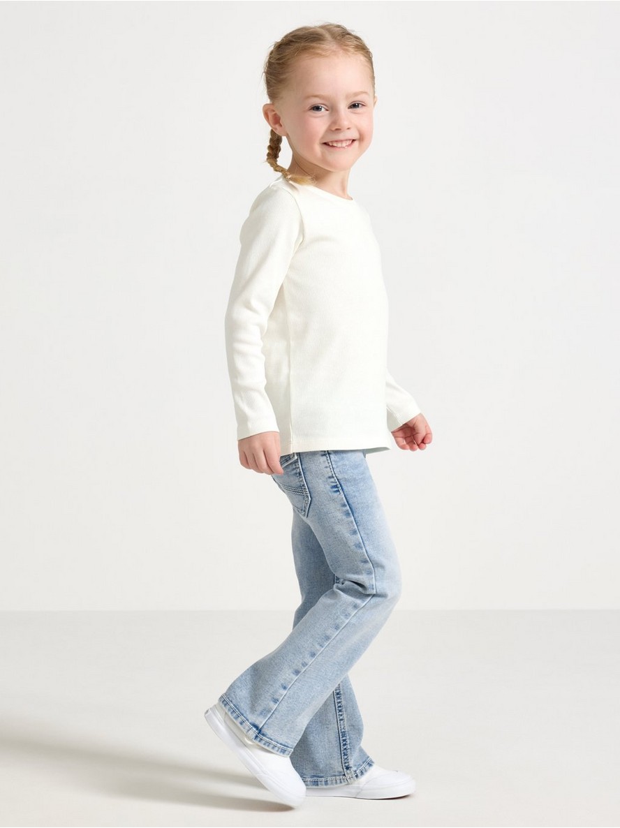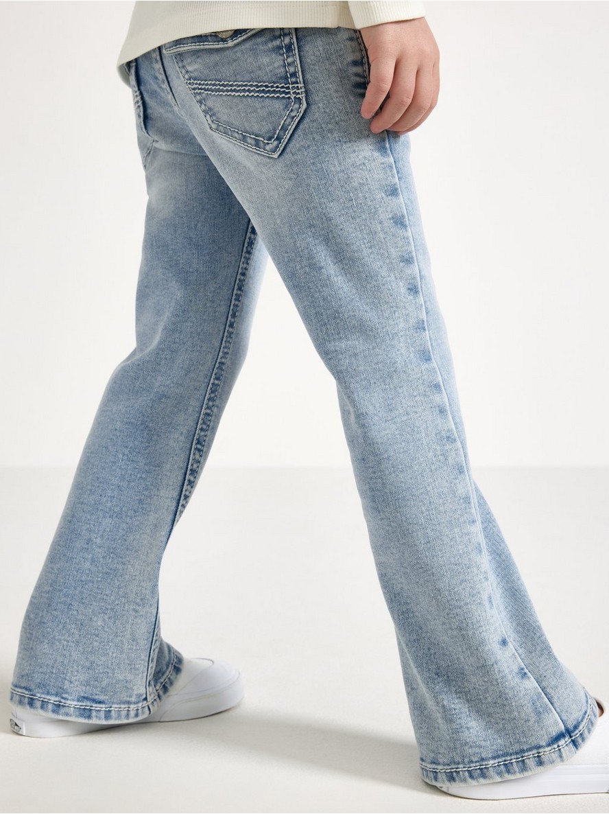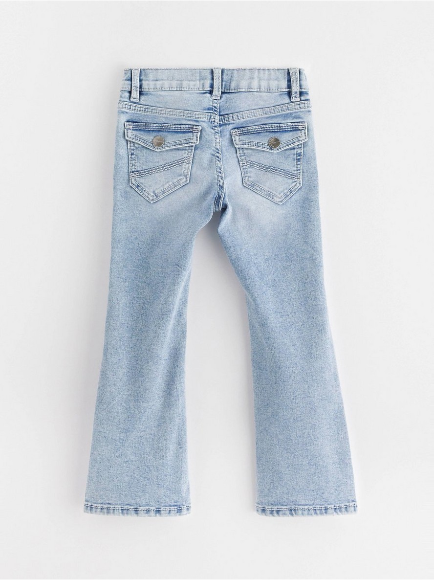 Rastegljive farmerke sa zvonastim nogavicama i klasičnim strukom.
