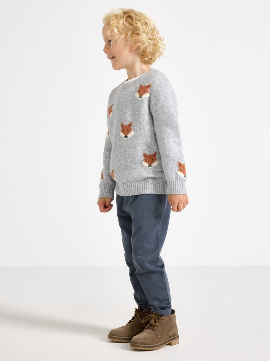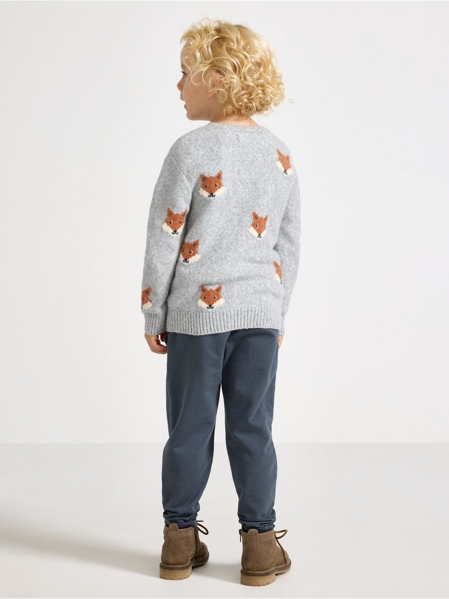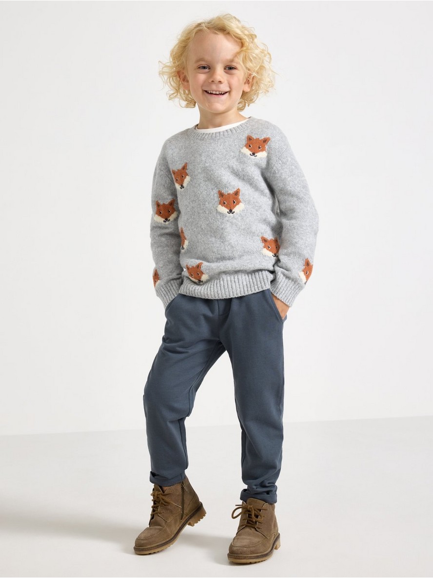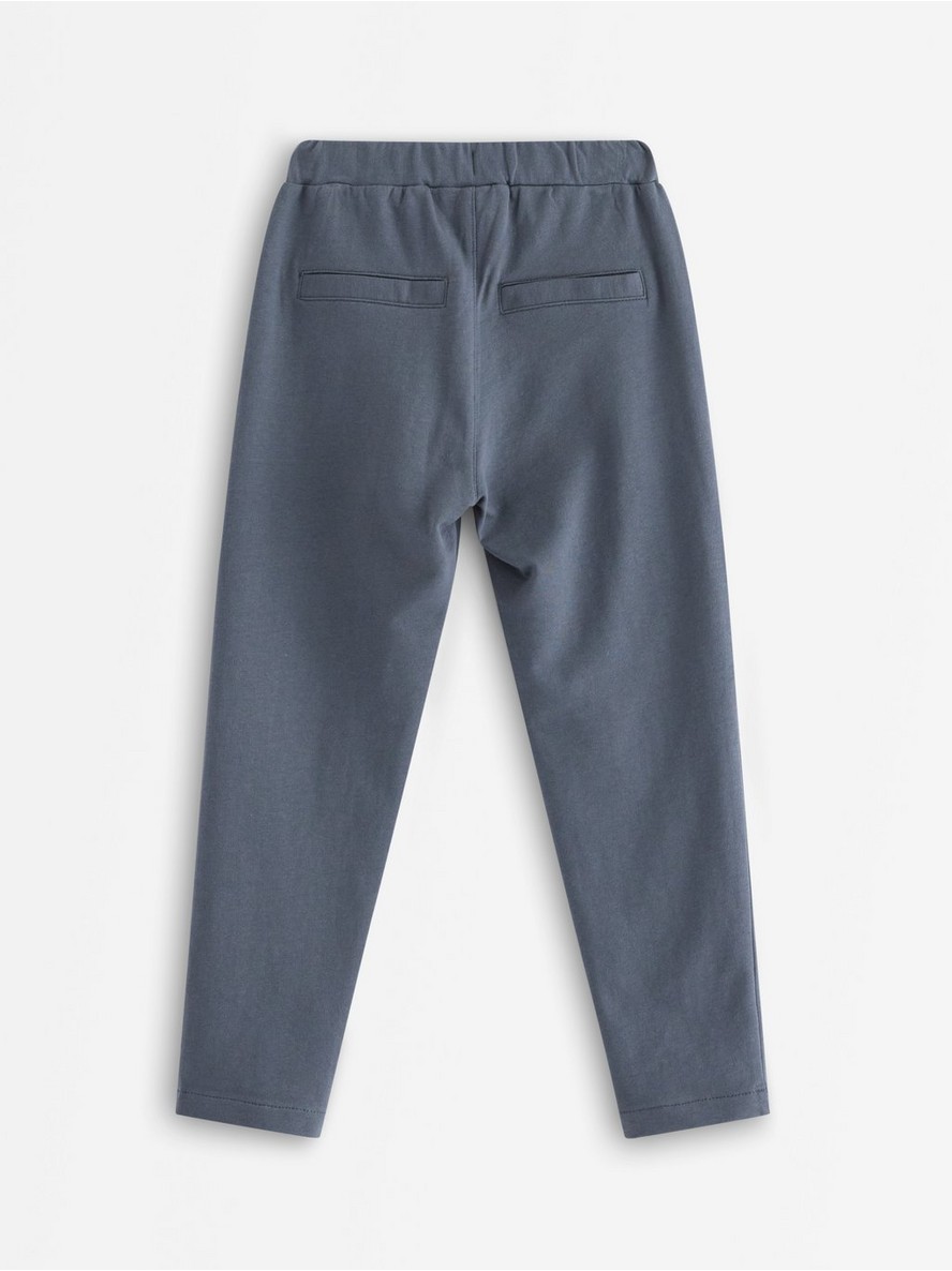 Meki pamučni džogeri sa elastičnim strukom i bočnim džepovima.