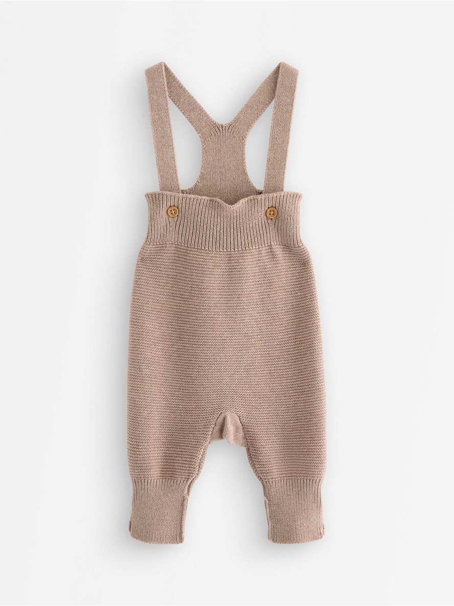 Pletene tregerice od mekanog i rastegljivog pamuka sa podesivim bretelama — udobne i praktične.