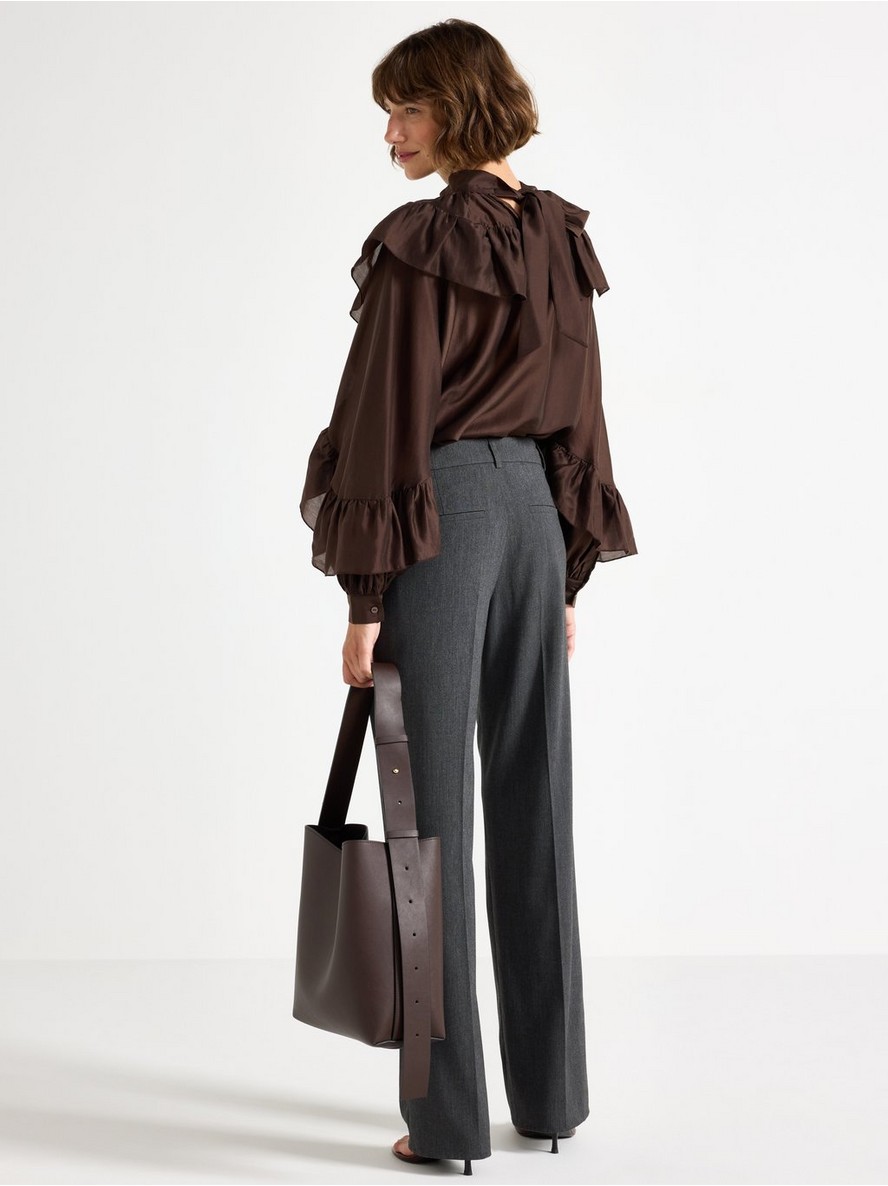 Elegantne pantalone sa ravnim krojem, standardnim strukom i naborima sprijeda i straga.
