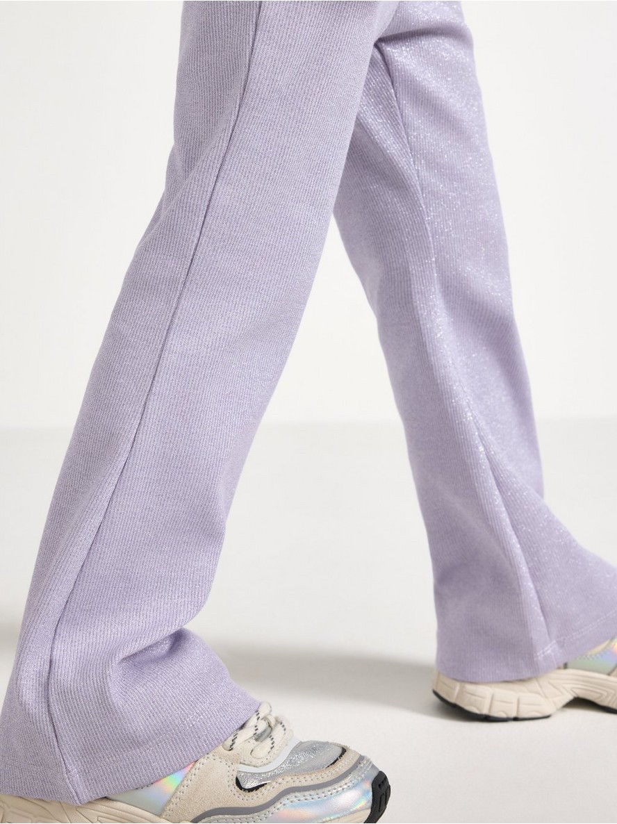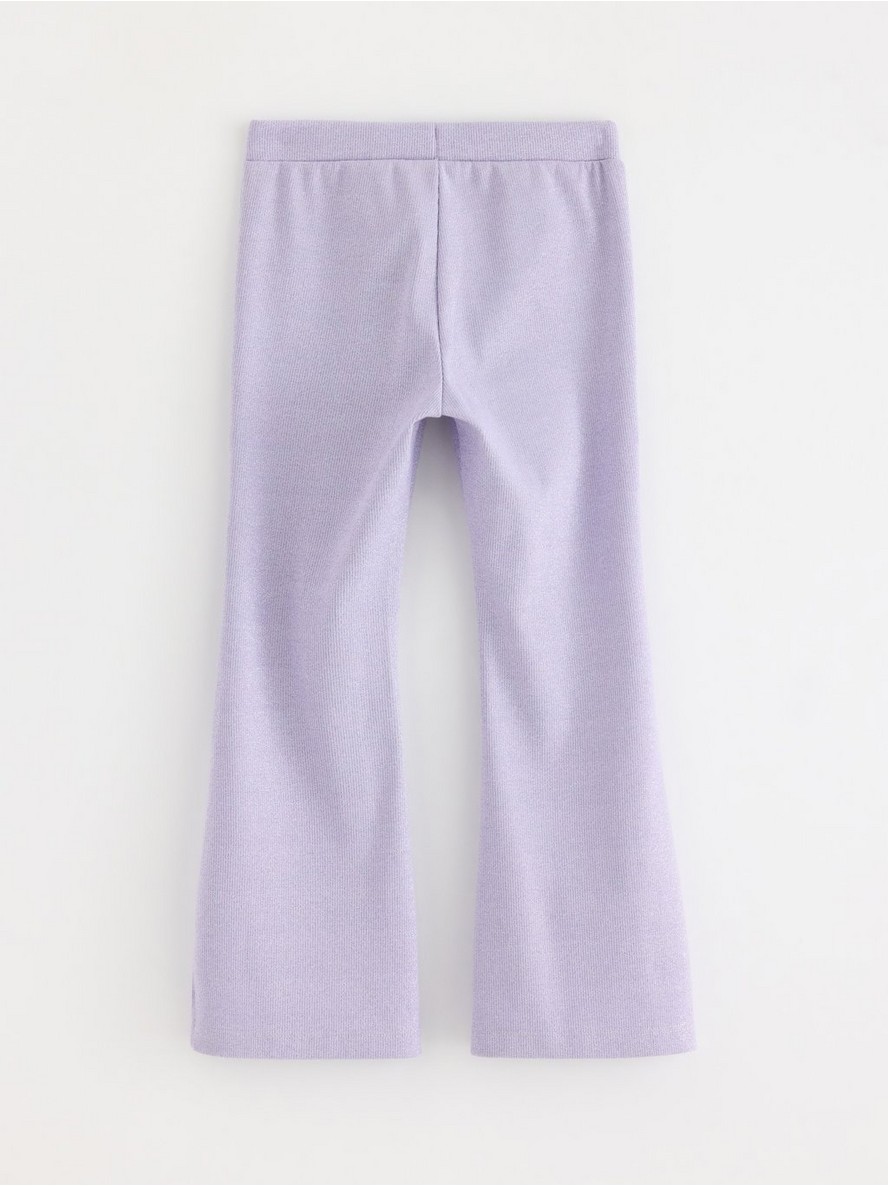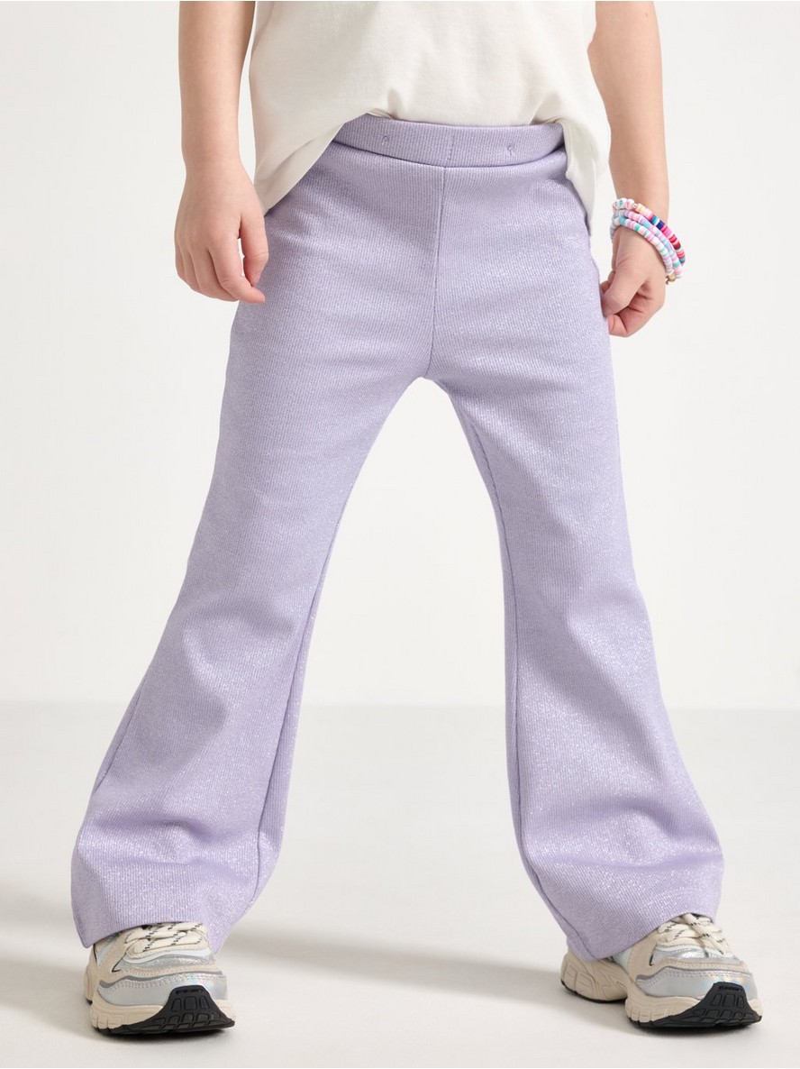 Udobne, rebraste pantalone od pamučnog blenda sa podesivim elastičnim strukom, zvonastim nogavicama i šljokicama po celoj površini.