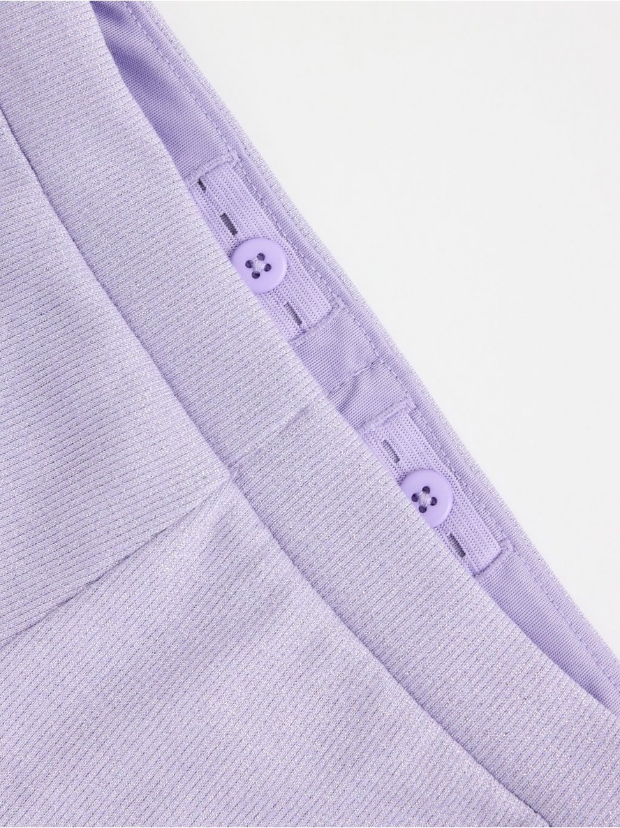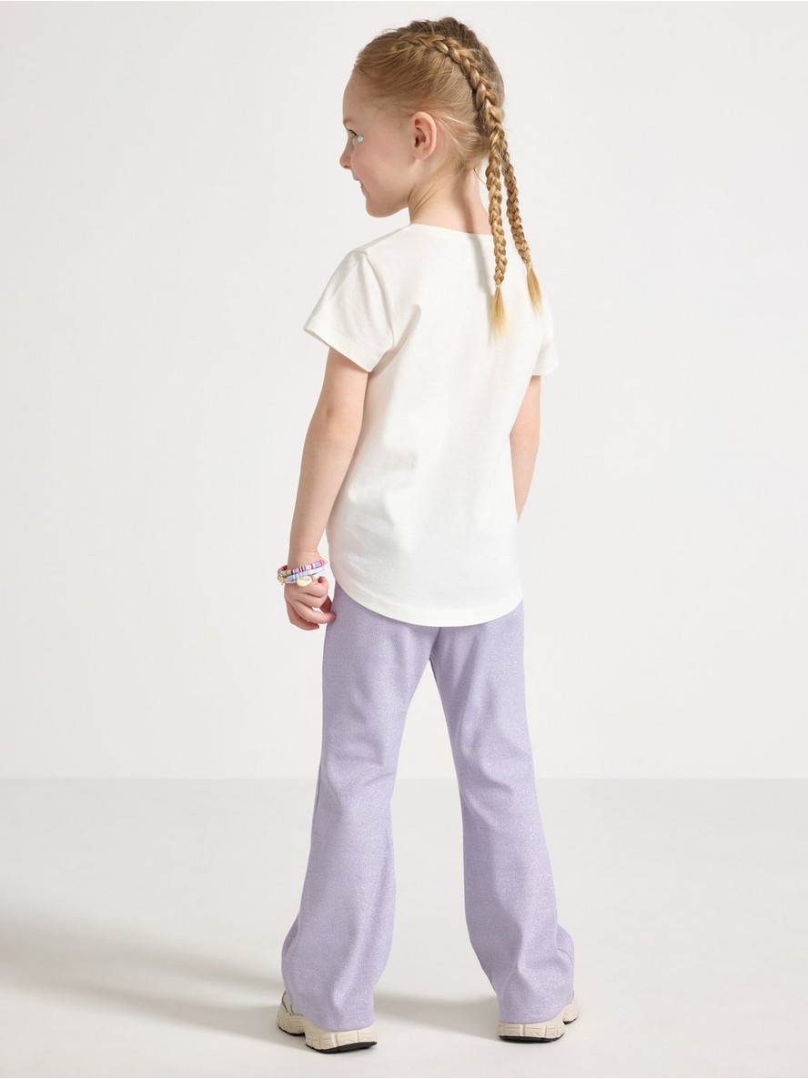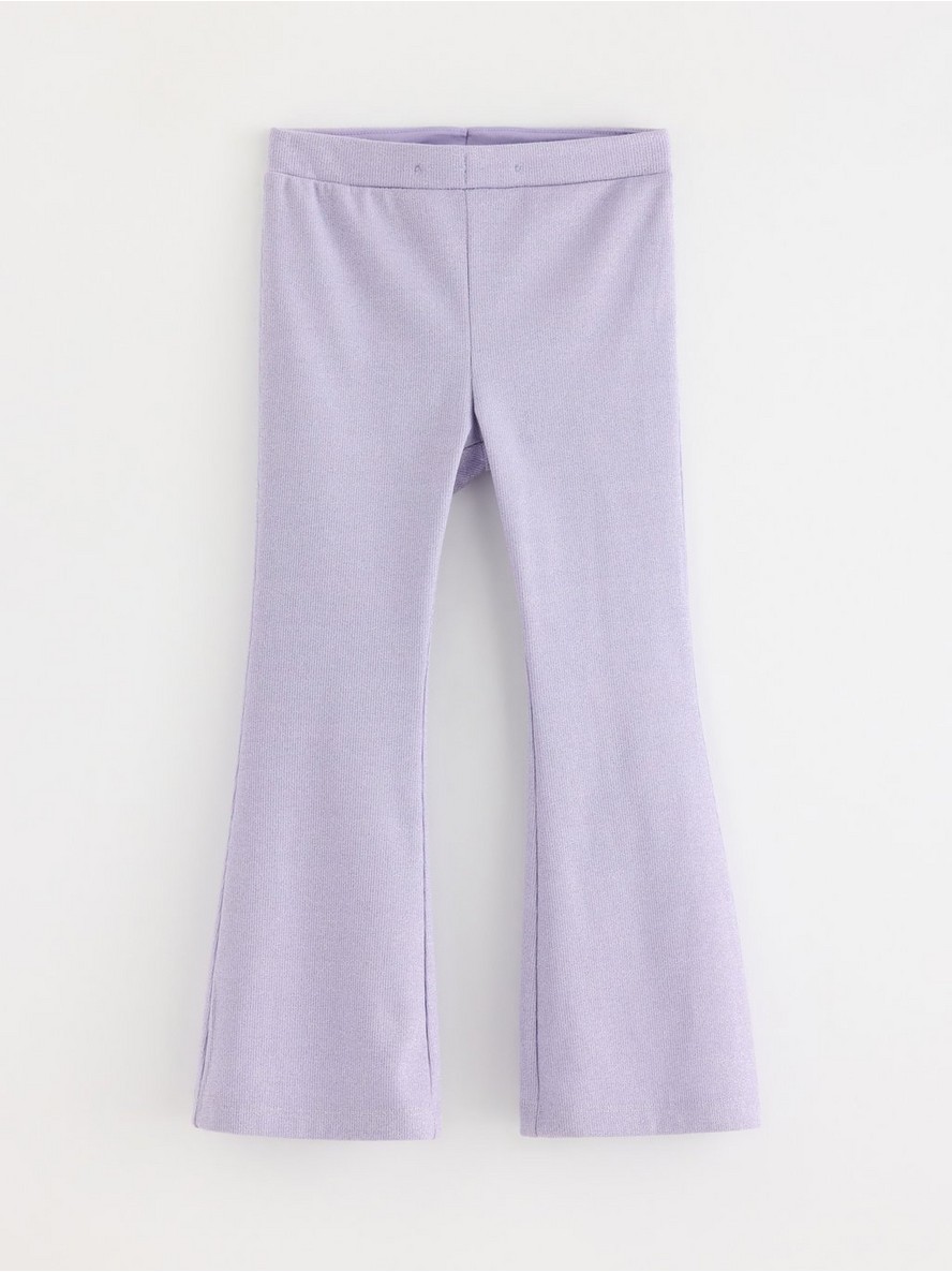 Udobne, rebraste pantalone od pamučnog blenda sa podesivim elastičnim strukom, zvonastim nogavicama i šljokicama po celoj površini.