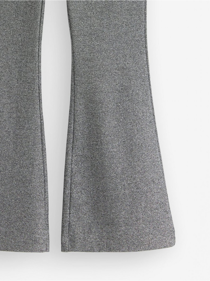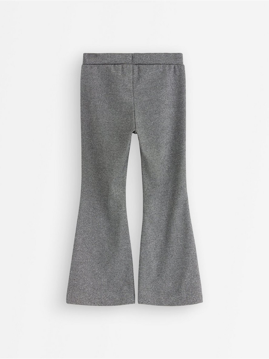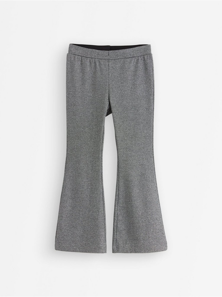 Udobne rebraste pantalone od pamučne mešavine sa podesivim elastičnim strukom, širokim nogavicama i šljokicama po celoj površini.