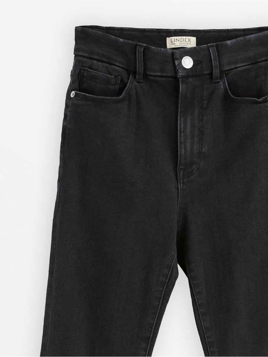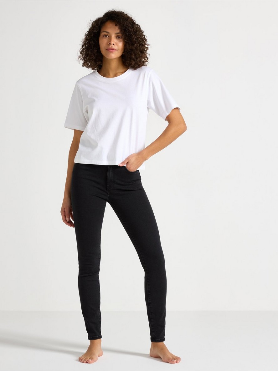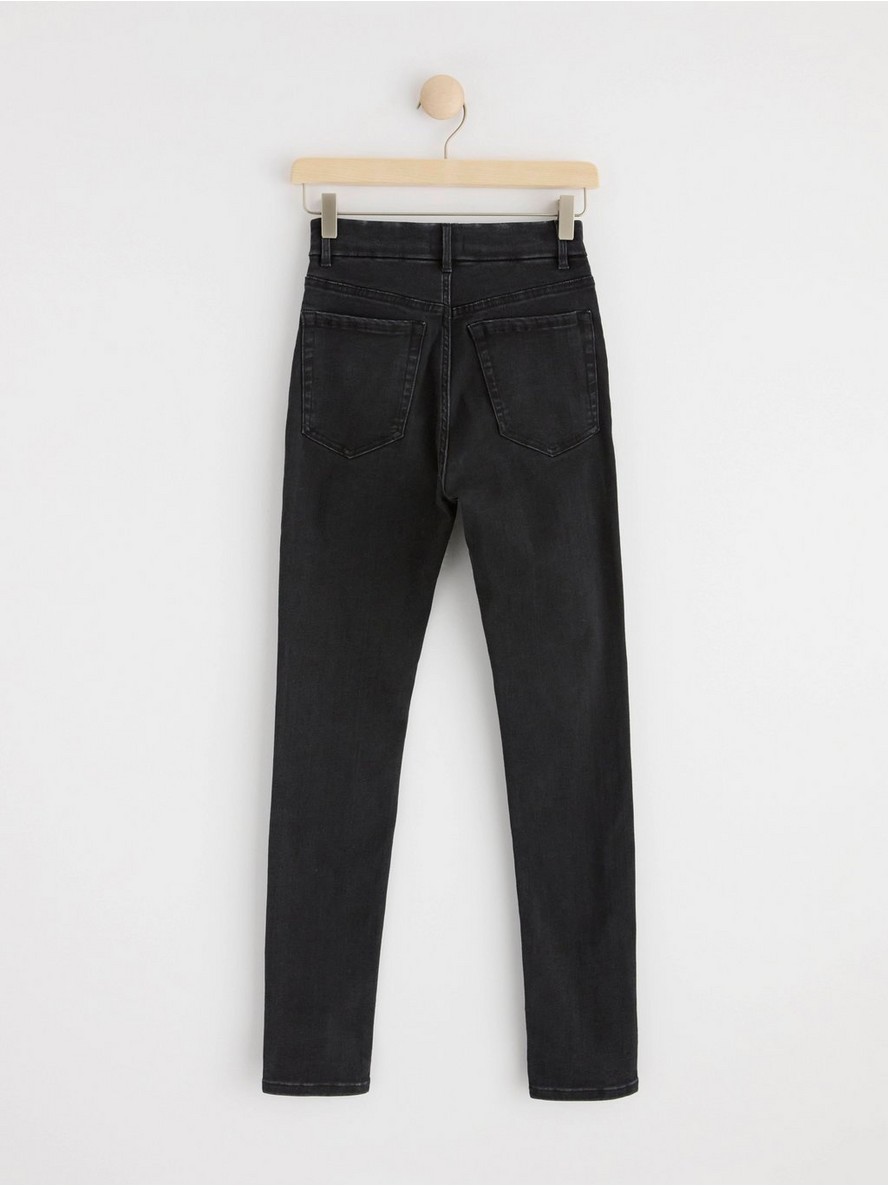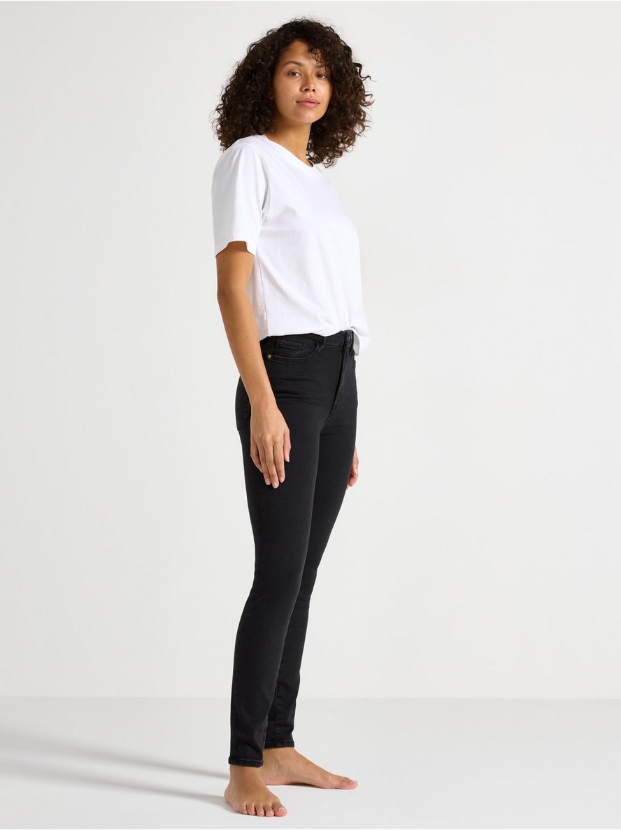 Farmerke visokog struka sa uskim nogavicama, od super rastegljivog materijala koji zadržava oblik zahvaljujući visokom stepenu oporavka.