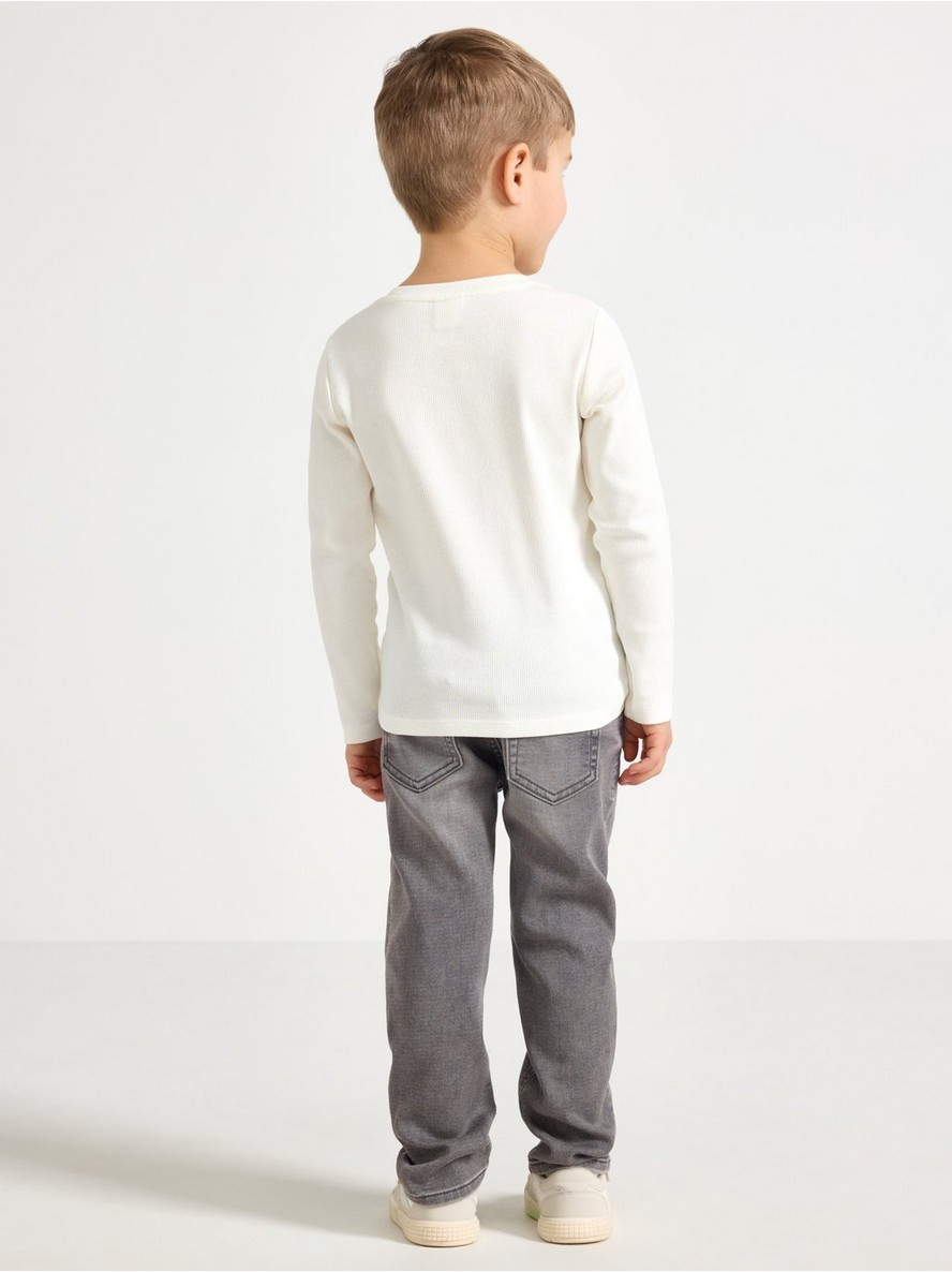 Udobne i rastegljive farmerke od mekanog džinsa sa regularnim strukom i ravnim nogavicama.
