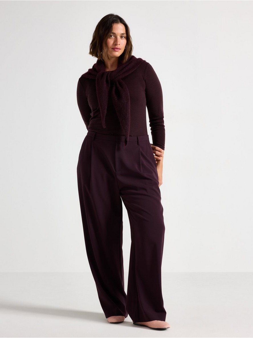 Stilske pantalone sa ravnim nogavicama i srednje povišenim strukom.