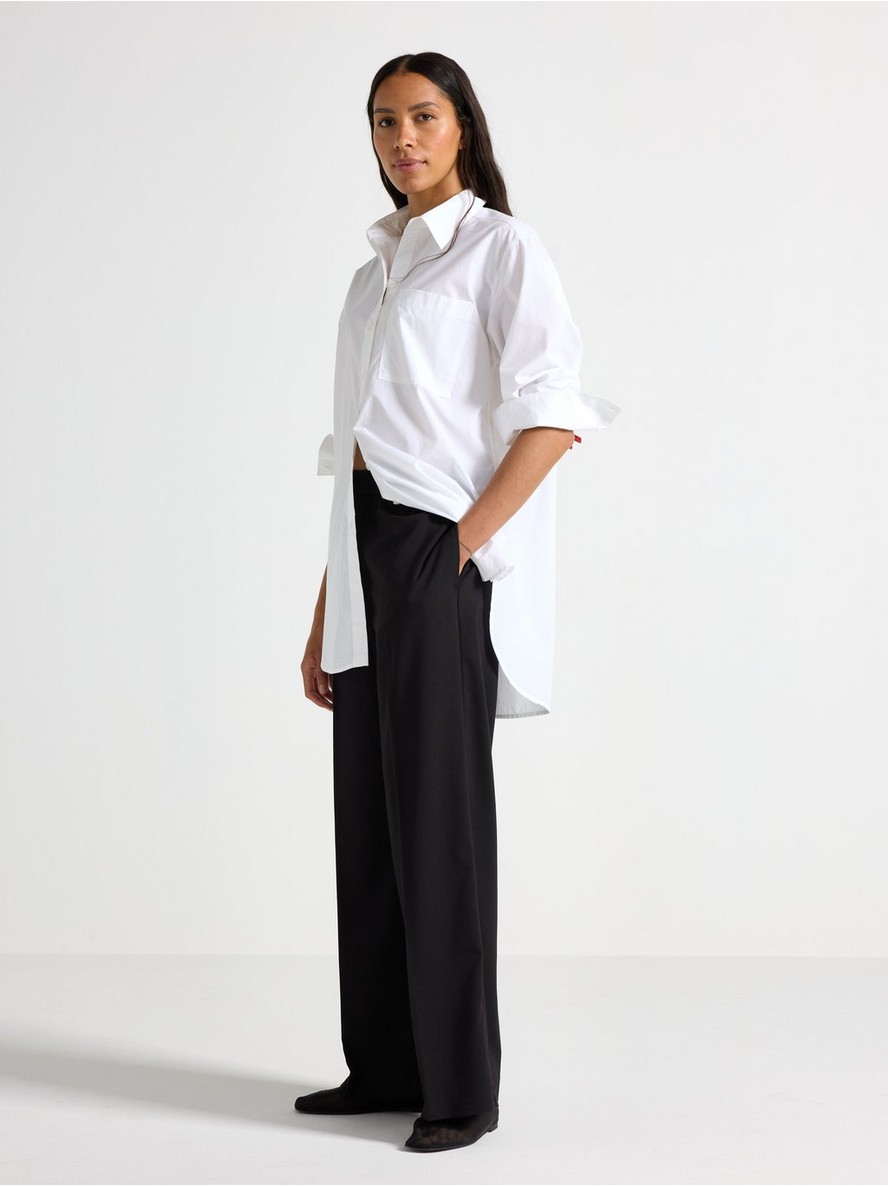 Pantalone sa ravnim nogavicama i naborima sprijeda i straga.