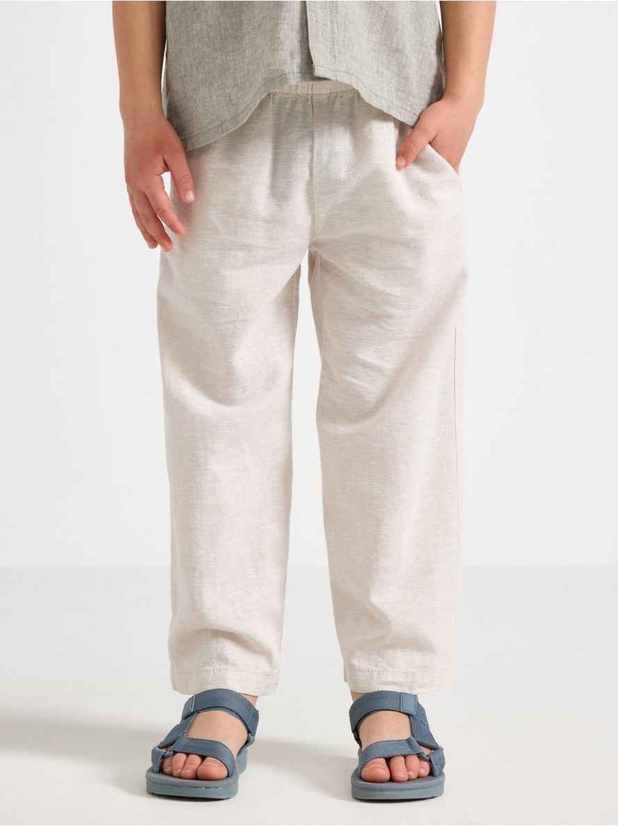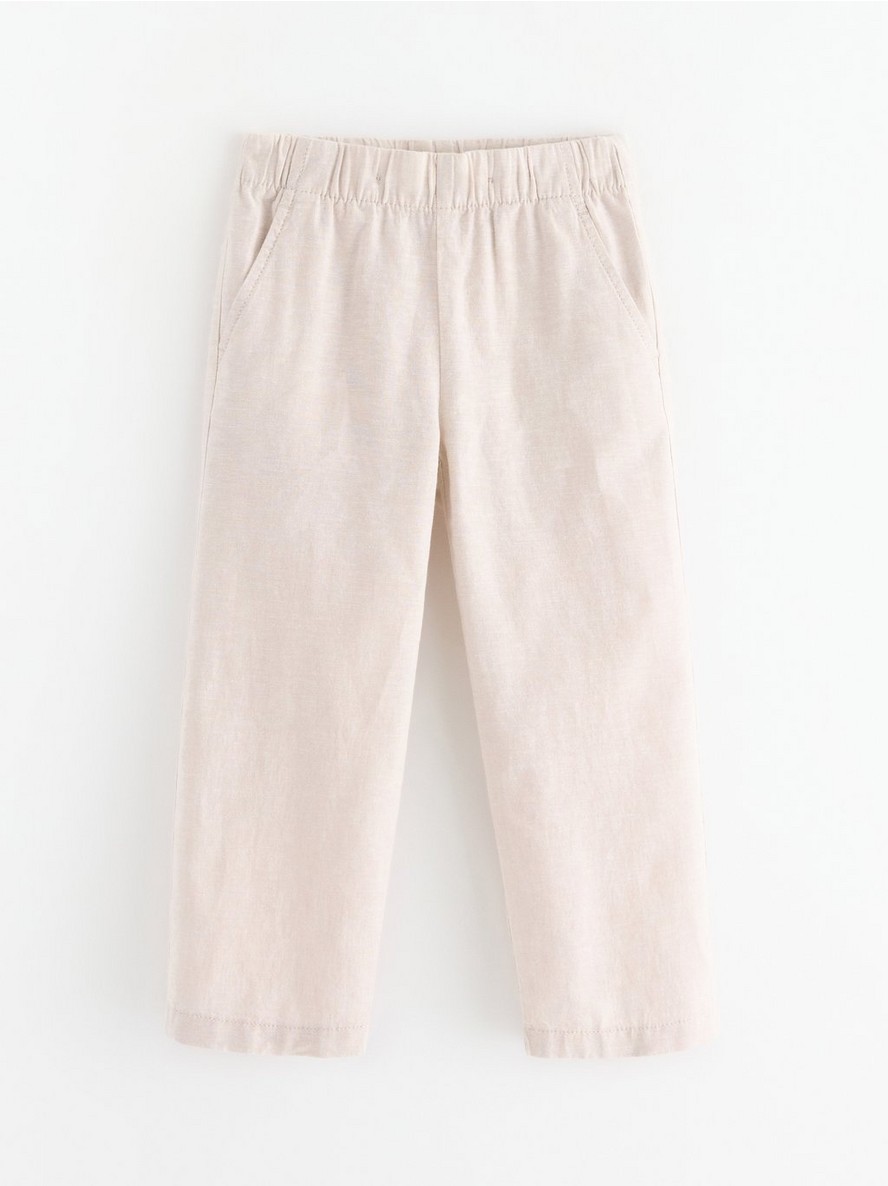 Ravne pantalone od mešavine lana sa elastičnim pojasom.