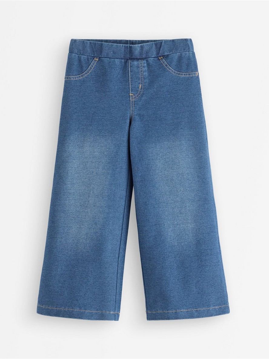 Mekane pantalone od džins džerseja sa širokim nogavicama.