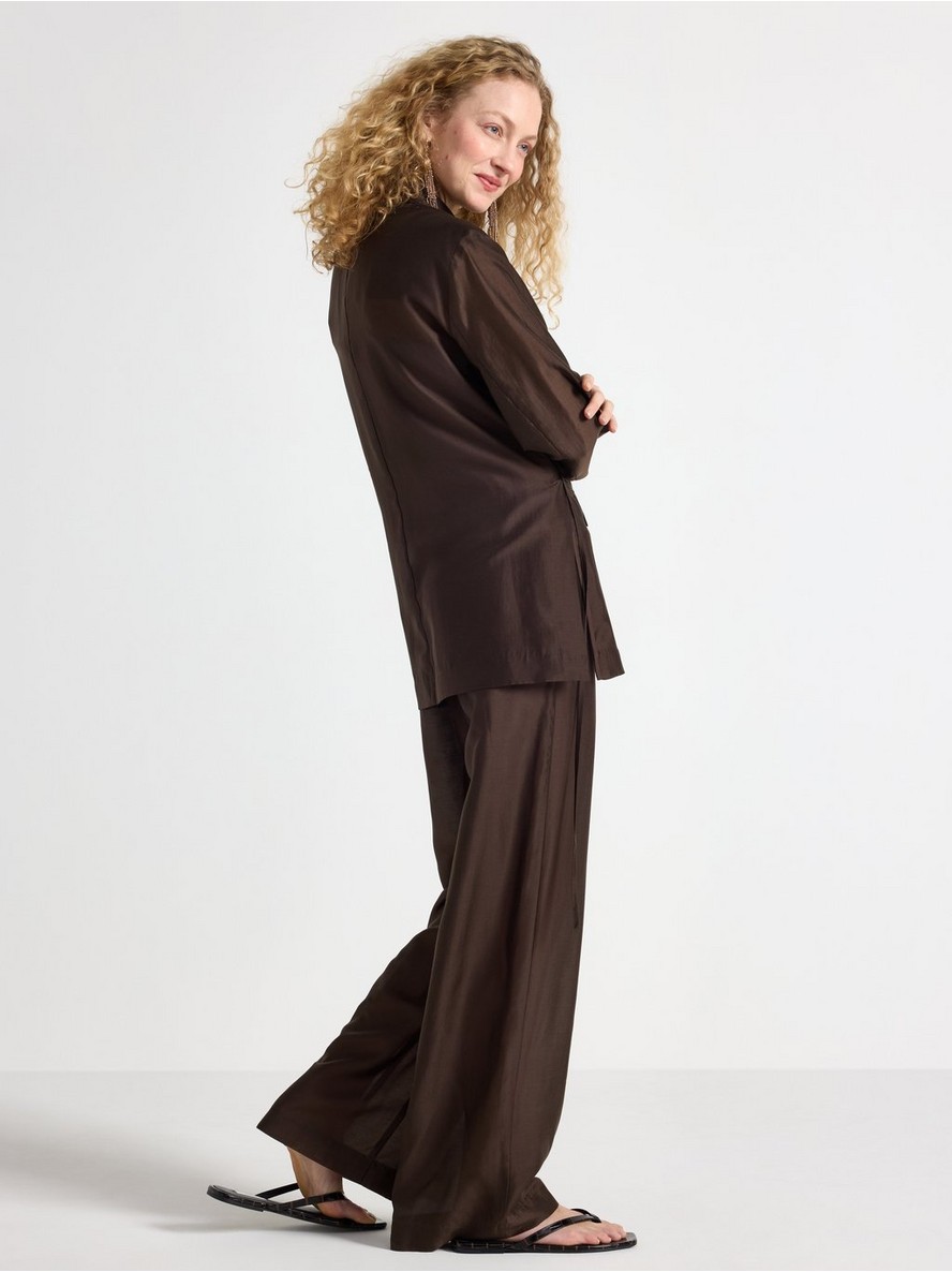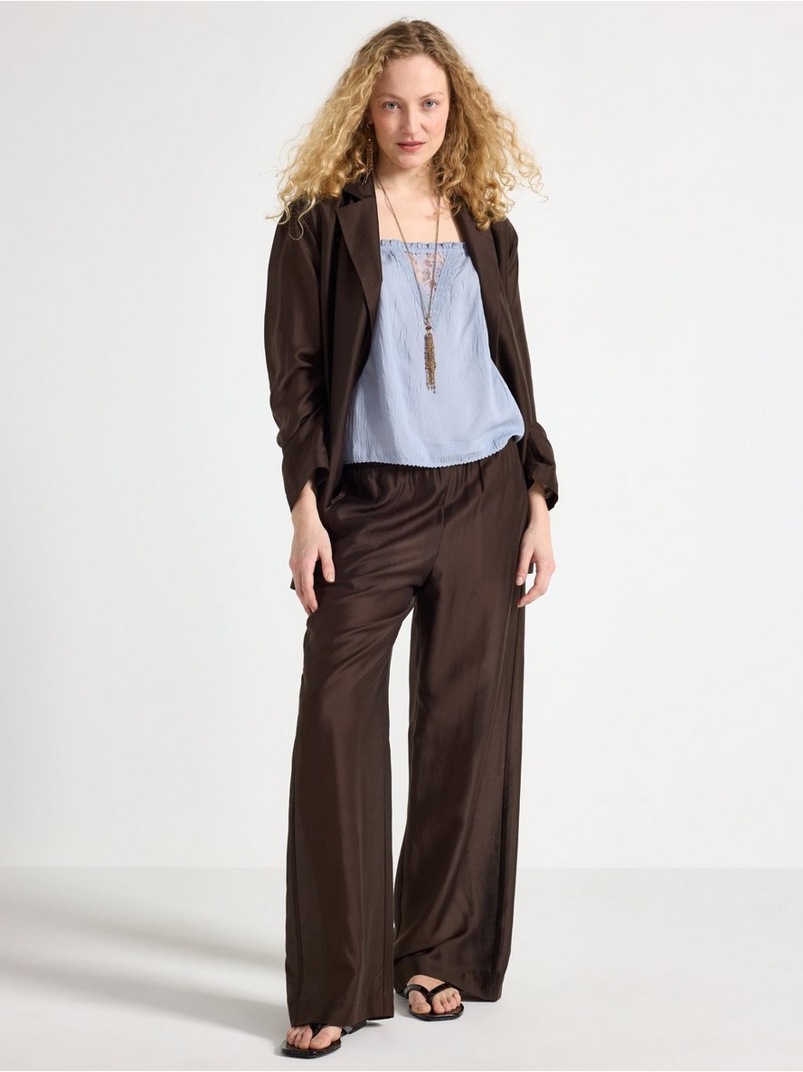 Stilske pantalone sa širokim nogavicama i udobnim elastičnim strukom.
