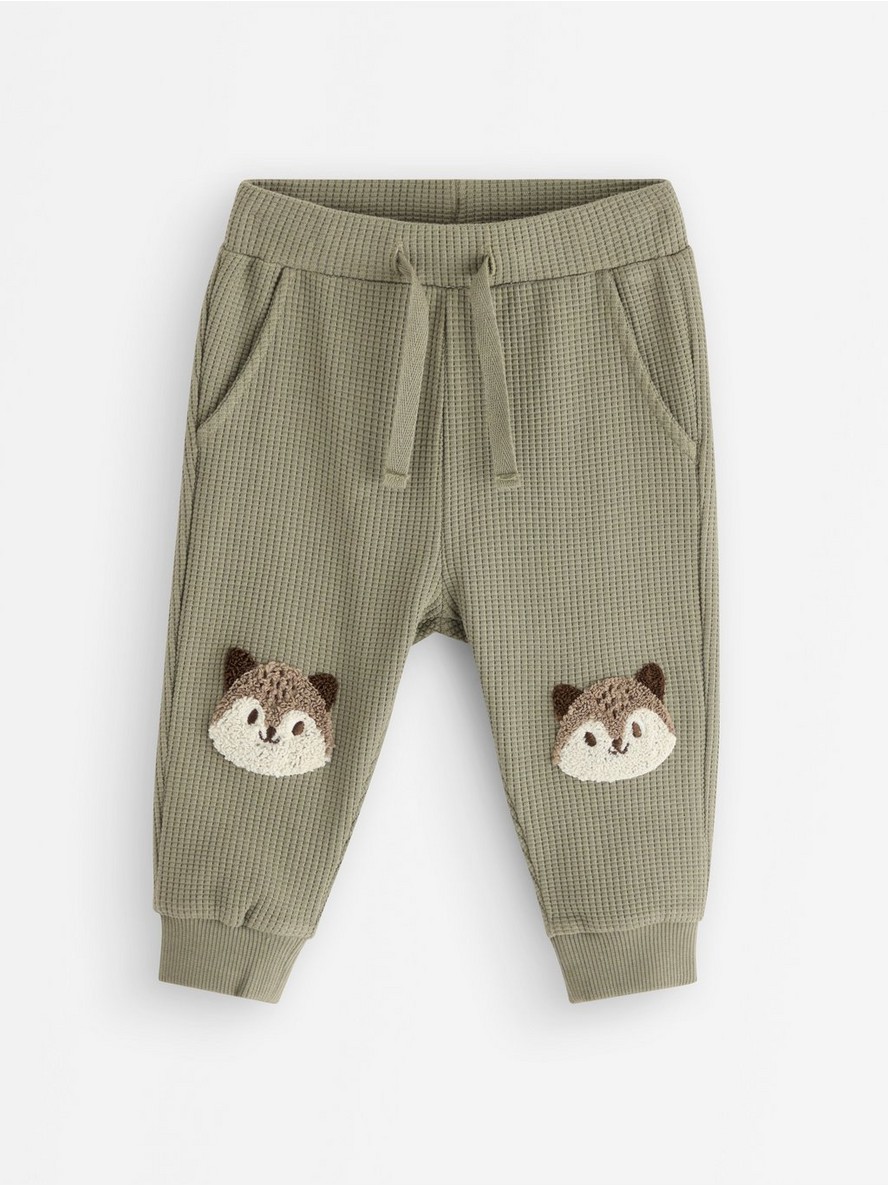 Jogger pantalone od vafliranog pamuka sa aplikacijama na kolenima i podesivom vezicom u struku.