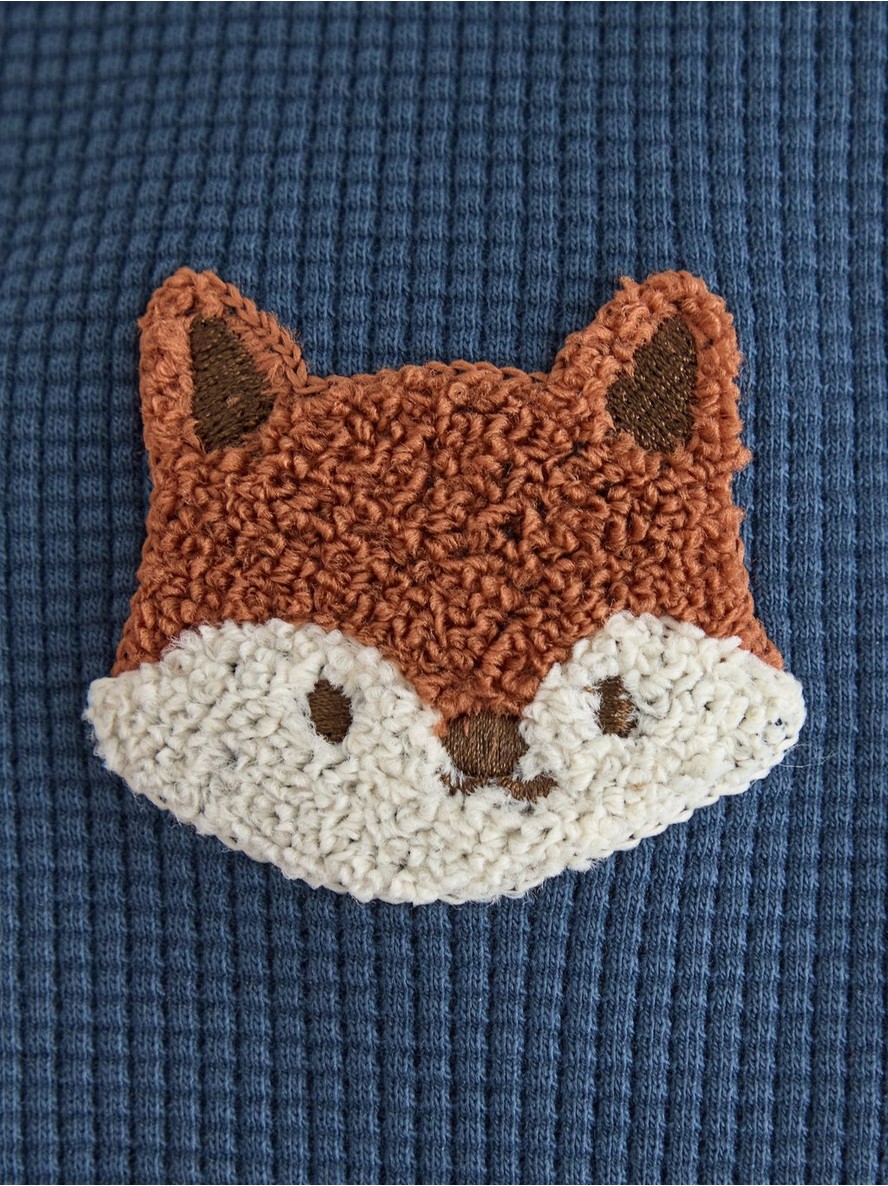 Džogeri od pamučnog materijala s waffle teksturom, sa aplikacijama na kolenima i vezicom u struku.