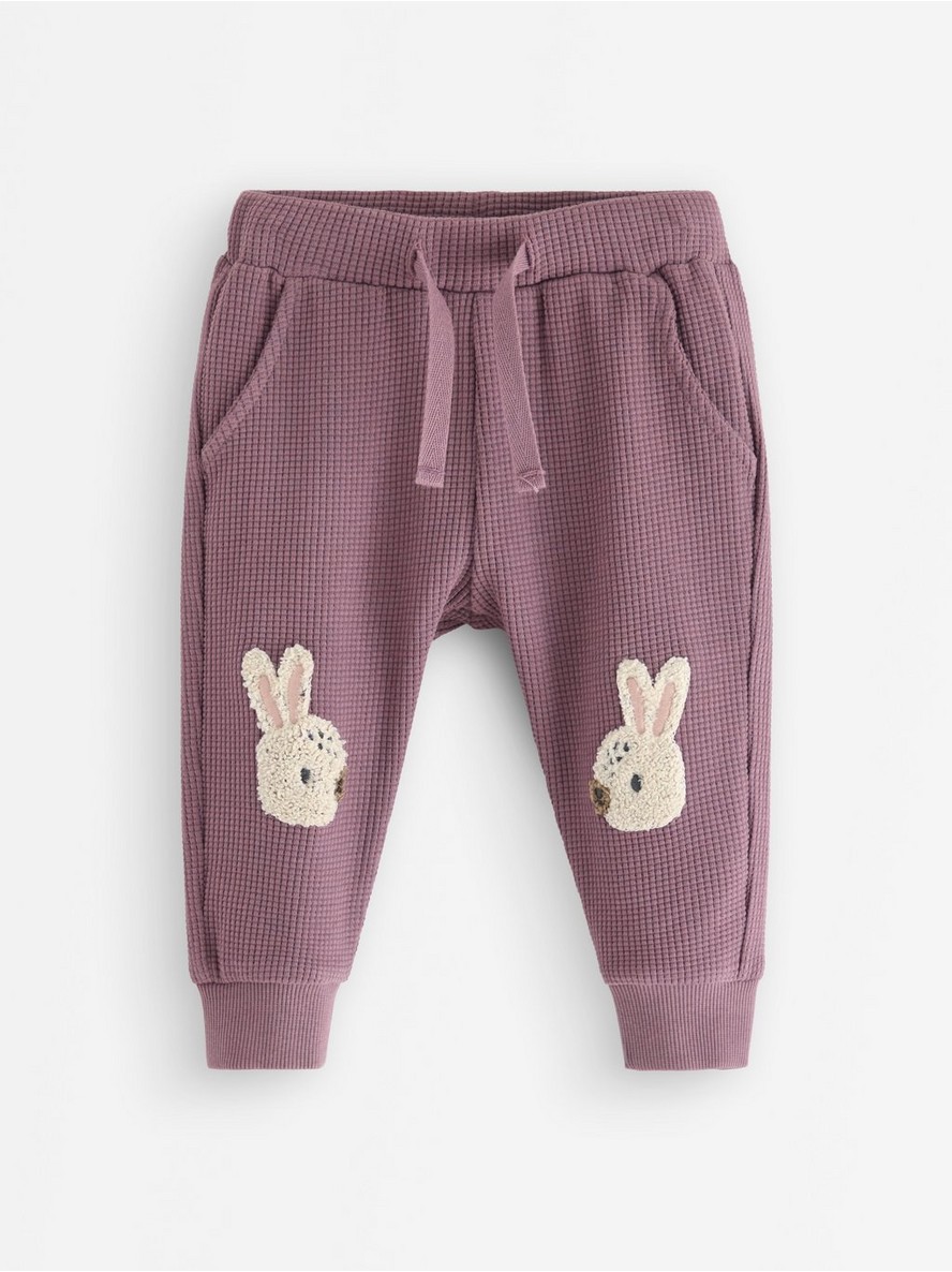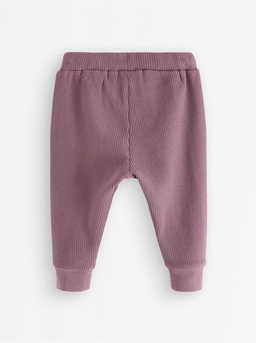 Jogger pantalone od pamučnog materijala sa vafel teksturom, sa aplikacijama na kolenima i vezicom u struku.