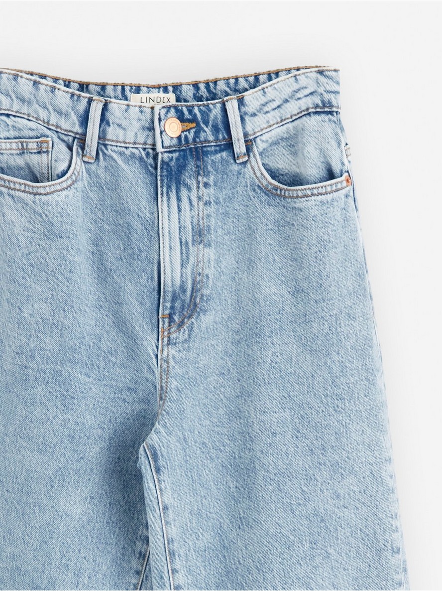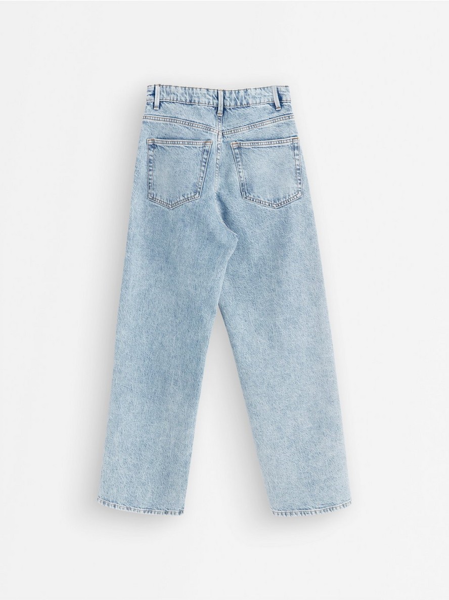 Traperice visokog struka od pamučnog denima sa blagom rastegljivošću i širokim nogavicama.