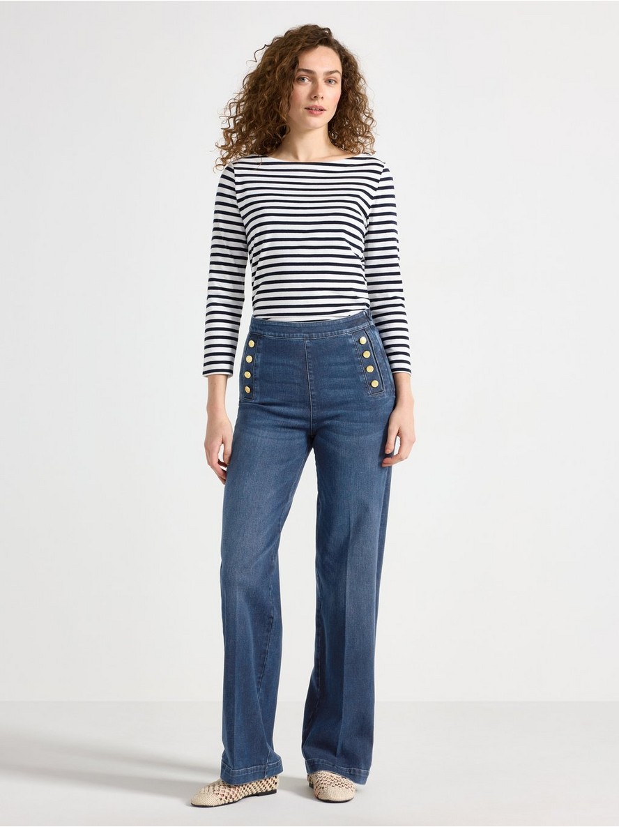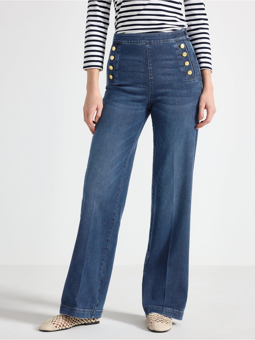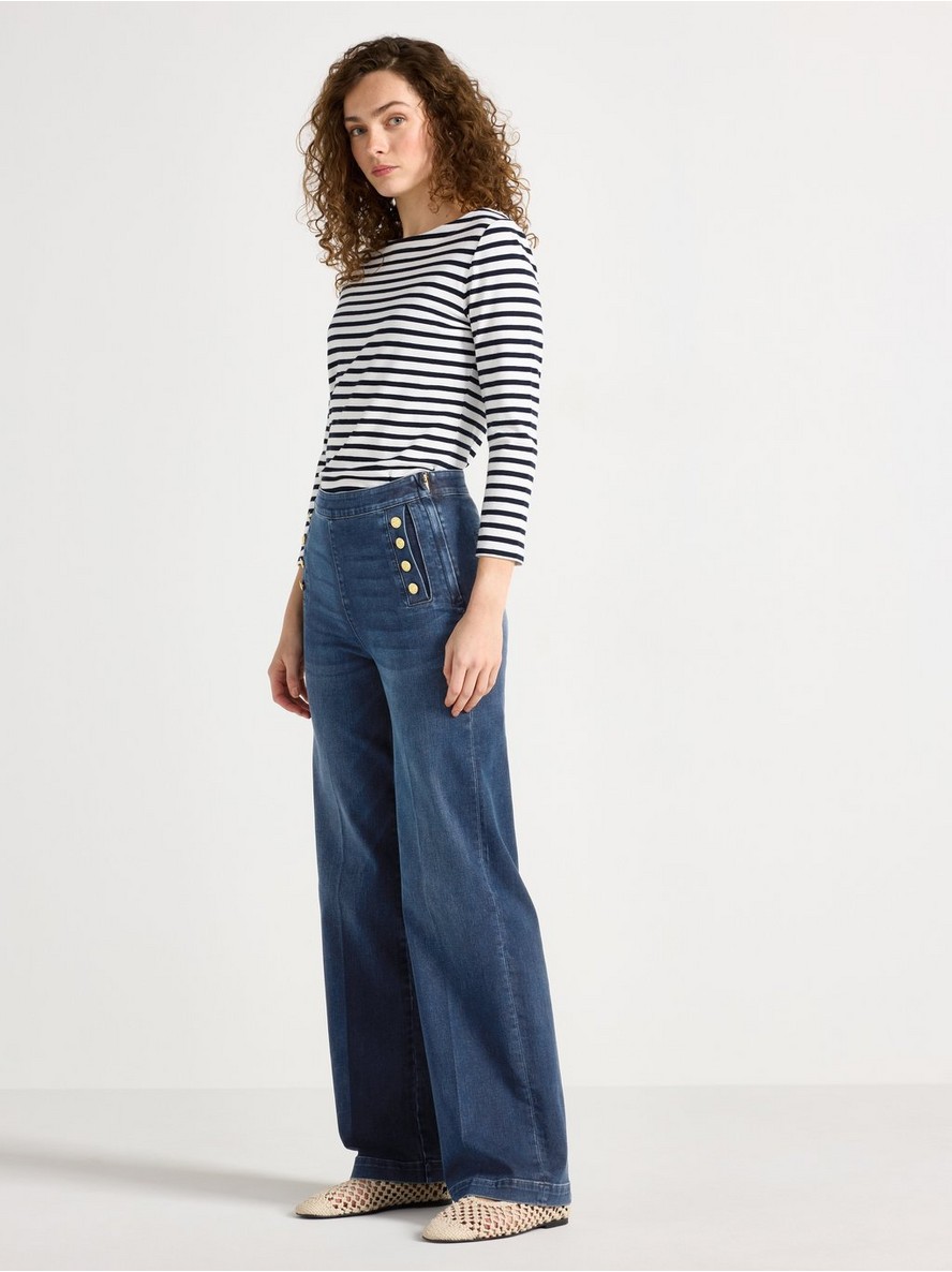 Farmerke visokog struka od pamučnog teksasa sa elastinom i širokim nogavicama.