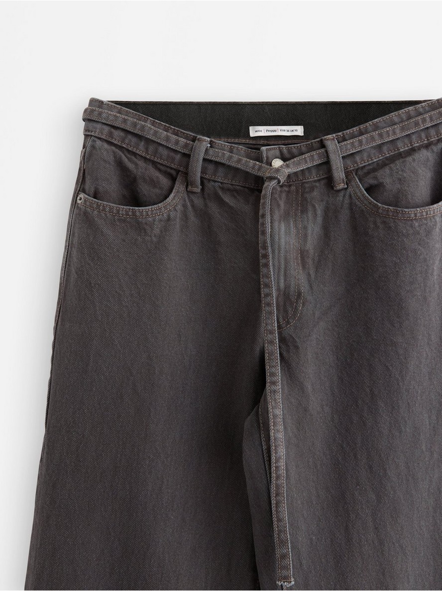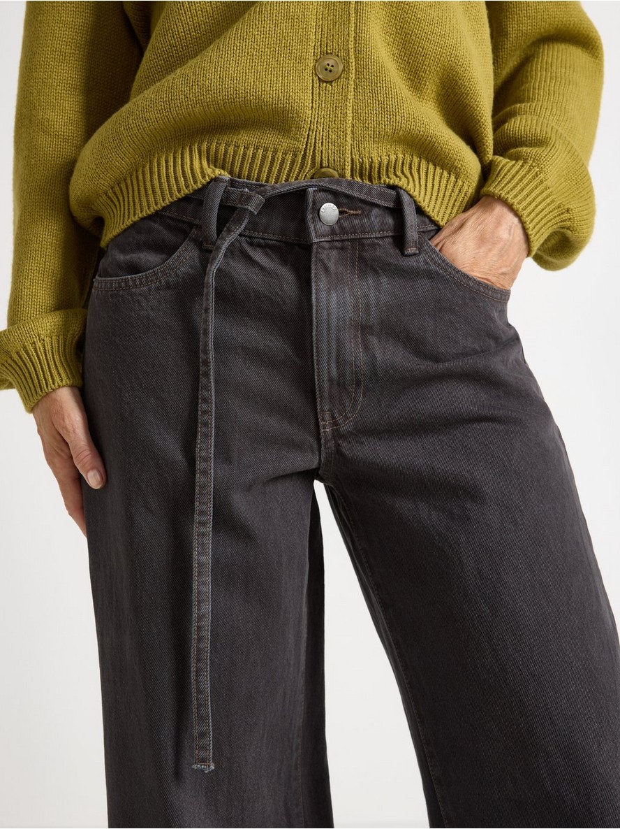 Farmerke srednjeg struka od pamučnog denima sa remenom za vezivanje u struku.