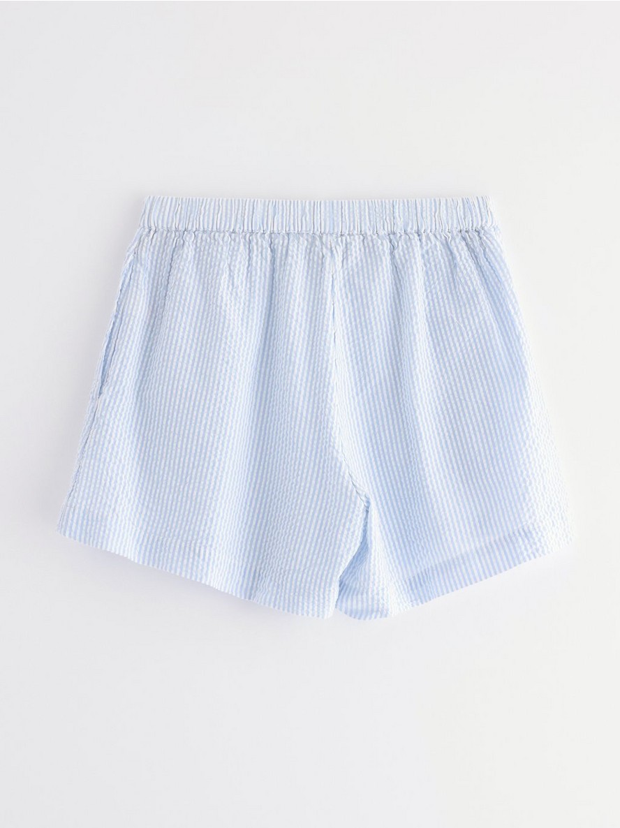 Mekani pidžama šortsevi od seersucker tkanine, sa elastičnim strukom i opuštenim krojem.