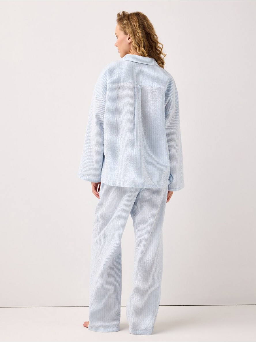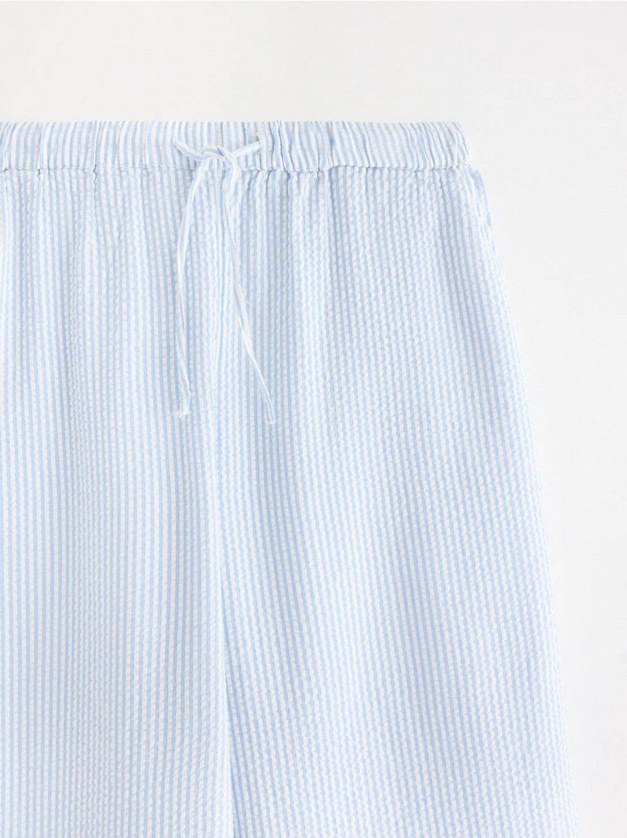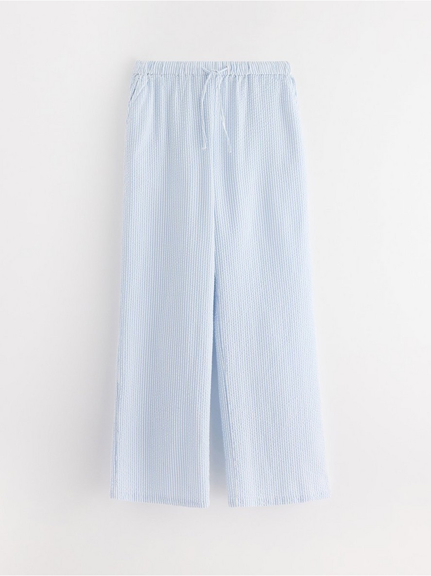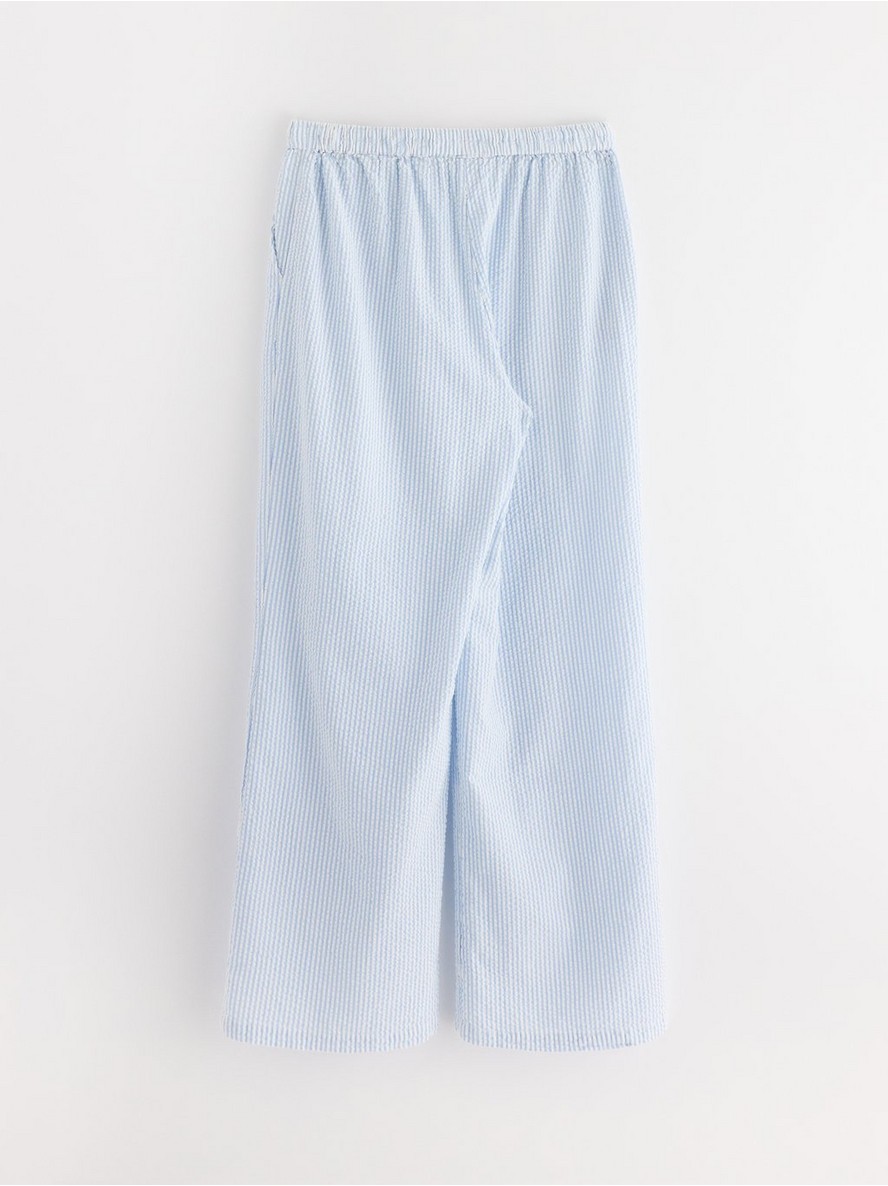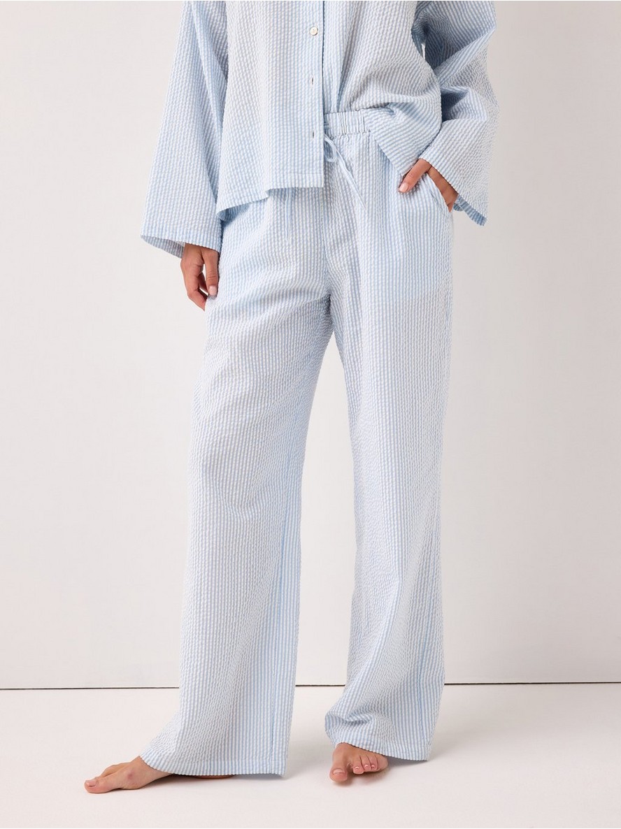 Pidžama pantalone od mekanog seersucker materijala, sa opuštenim krojem i dužim nogavicama.