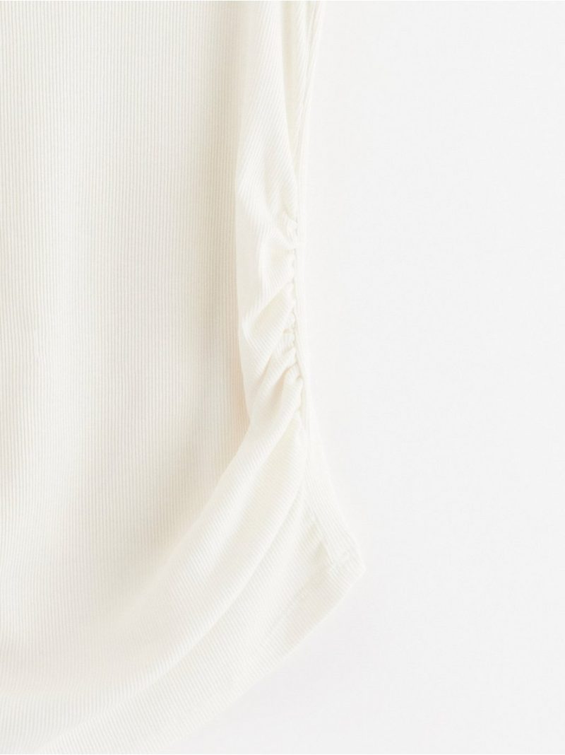 Mekana, rebrasta majica na bretele za trudnice, ležernog kroja sa dodatnim prostorom za rastući stomak.
