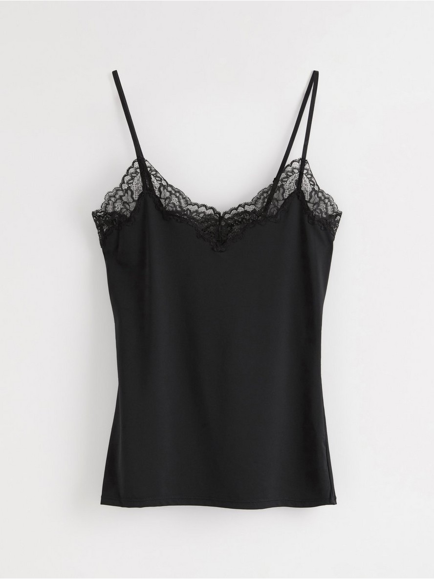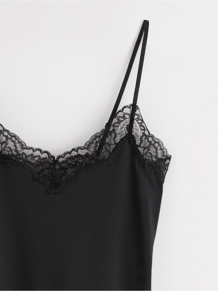Elegantna potkošulja sa čipkanim detaljima i podesivim naramenicama.
