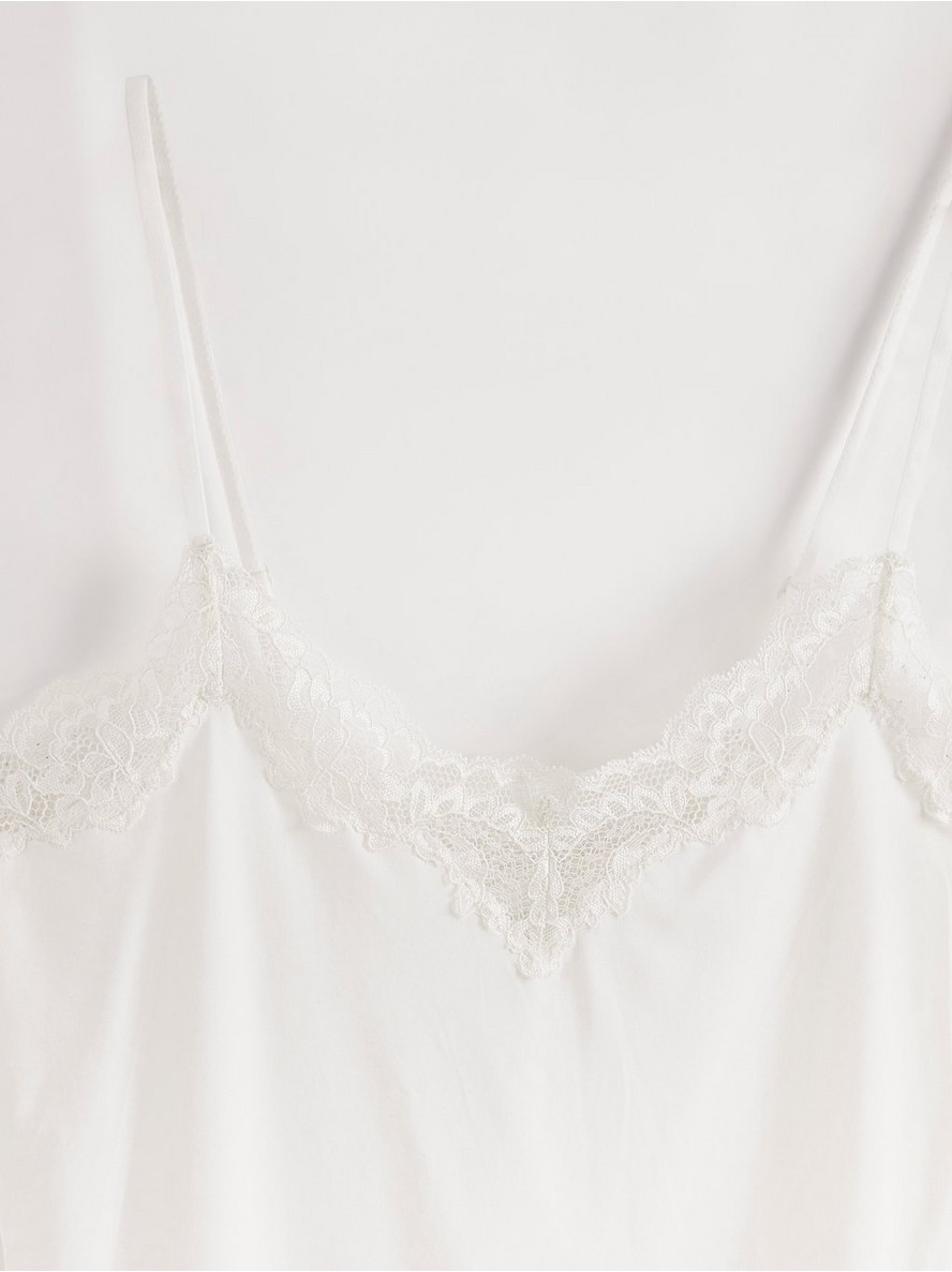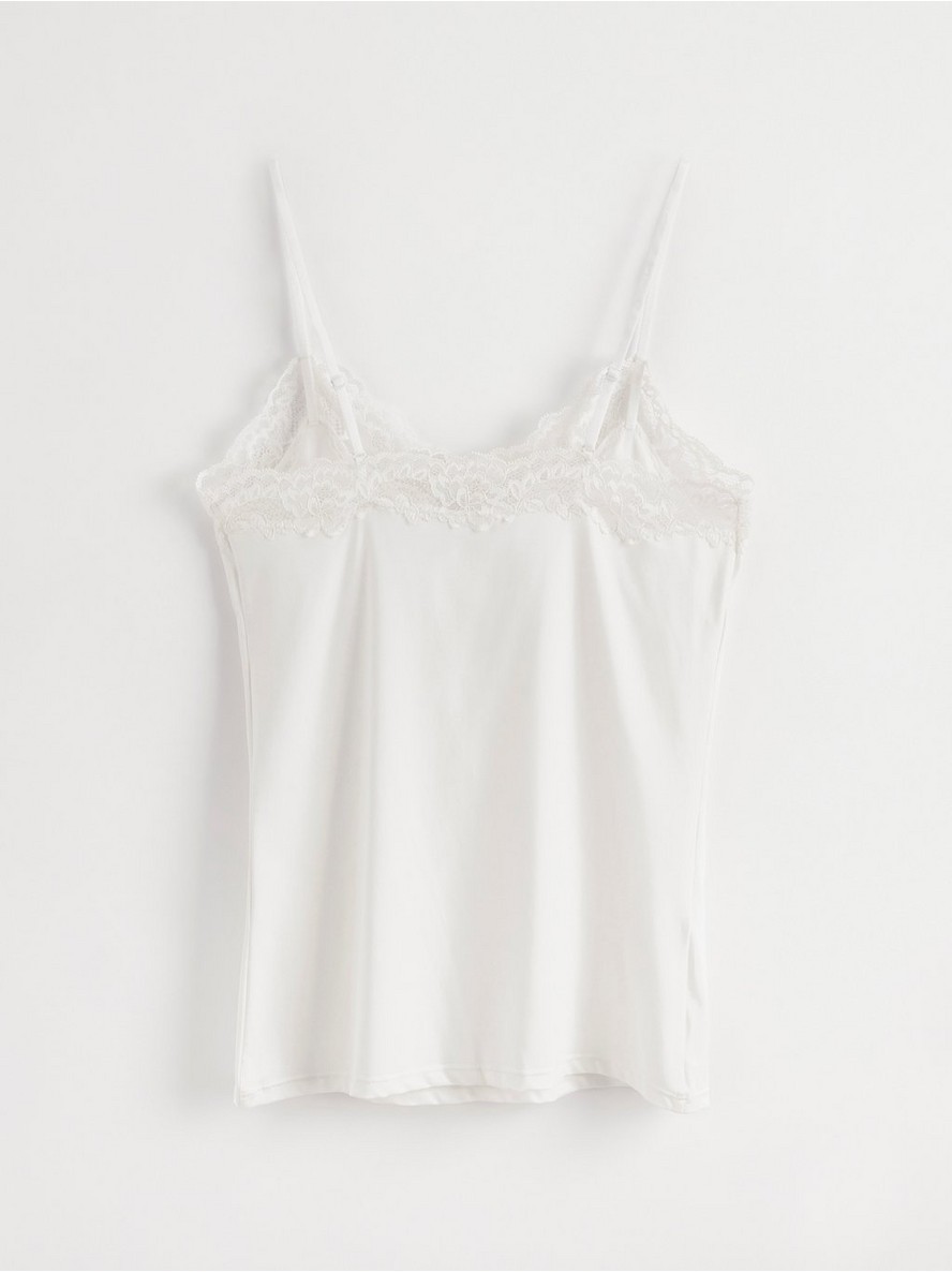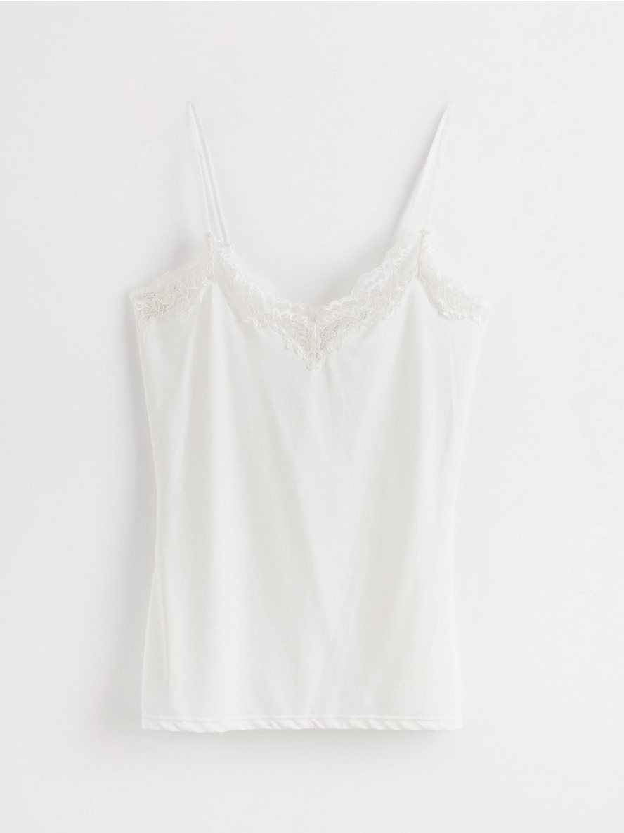 Elegantna kamisola sa čipkanim detaljem i podesivim naramenicama.
