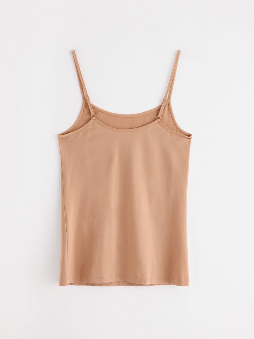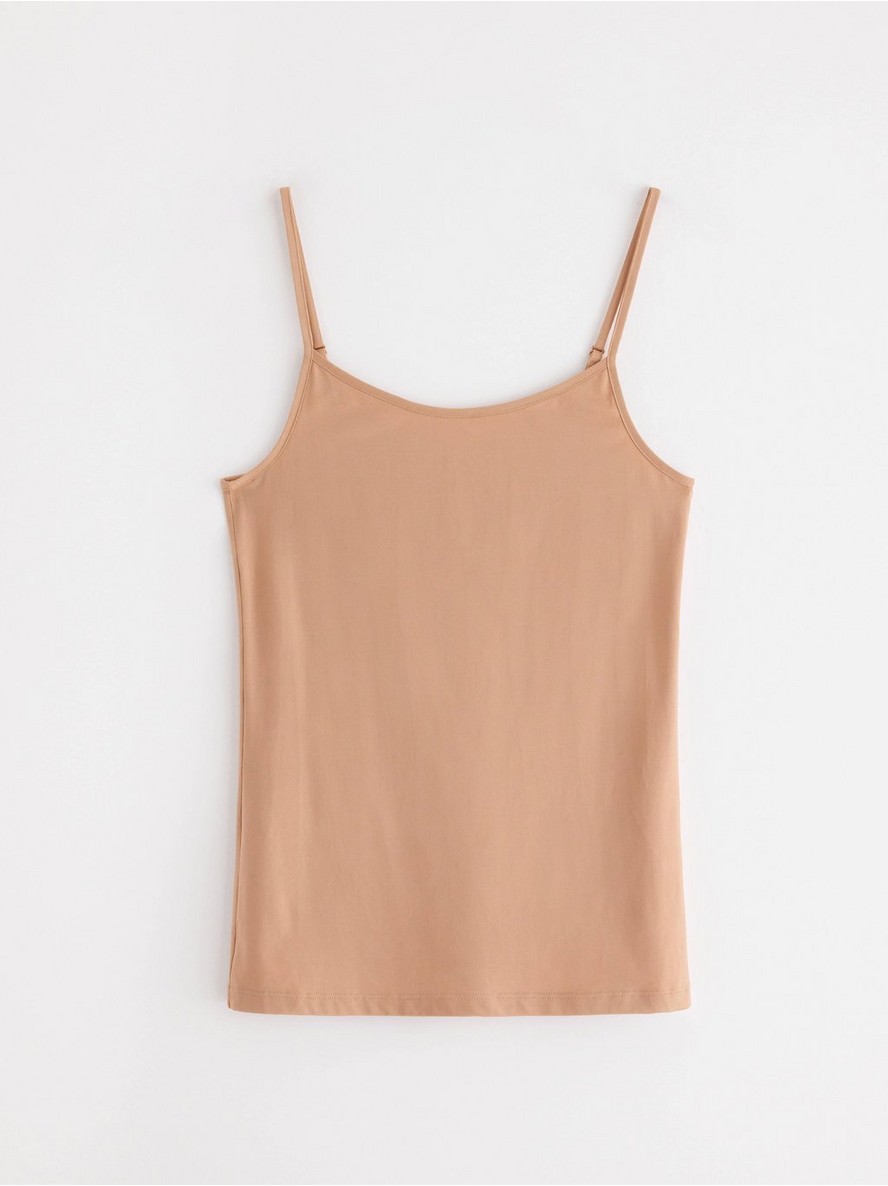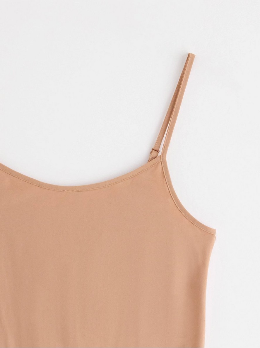 Mekana potkošulja od mikrovlakana, uskog kroja koji prati figuru, sa tankim, podesivim naramenicama.