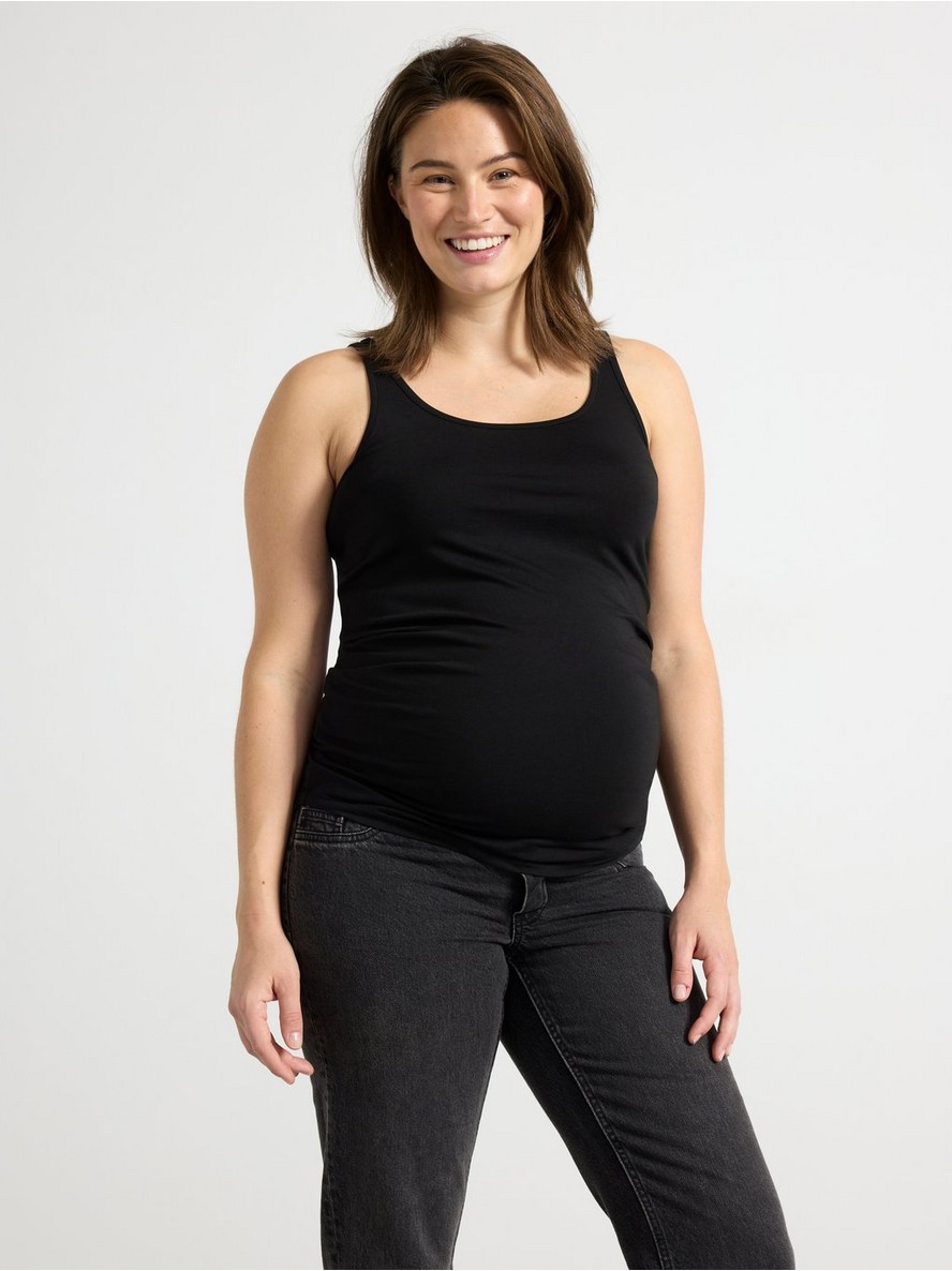 Trudnički top bez rukava od mekog pamuka sa udobnim, rastegljivim krojem koji ostavlja prostora za rastući stomak.