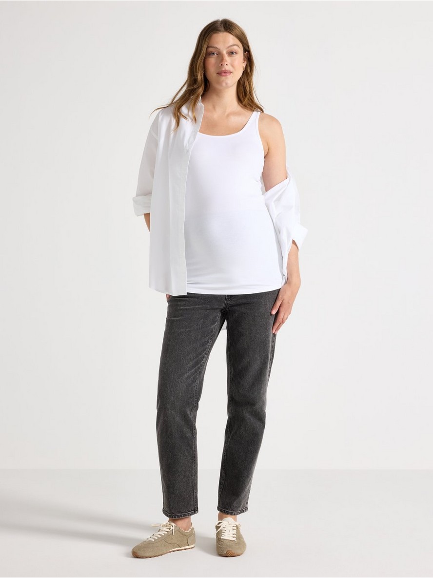 Top za trudnice bez rukava od mekanog pamuka sa udobnim, rastezljivim krojem koji ostavlja prostora za rastući stomak.