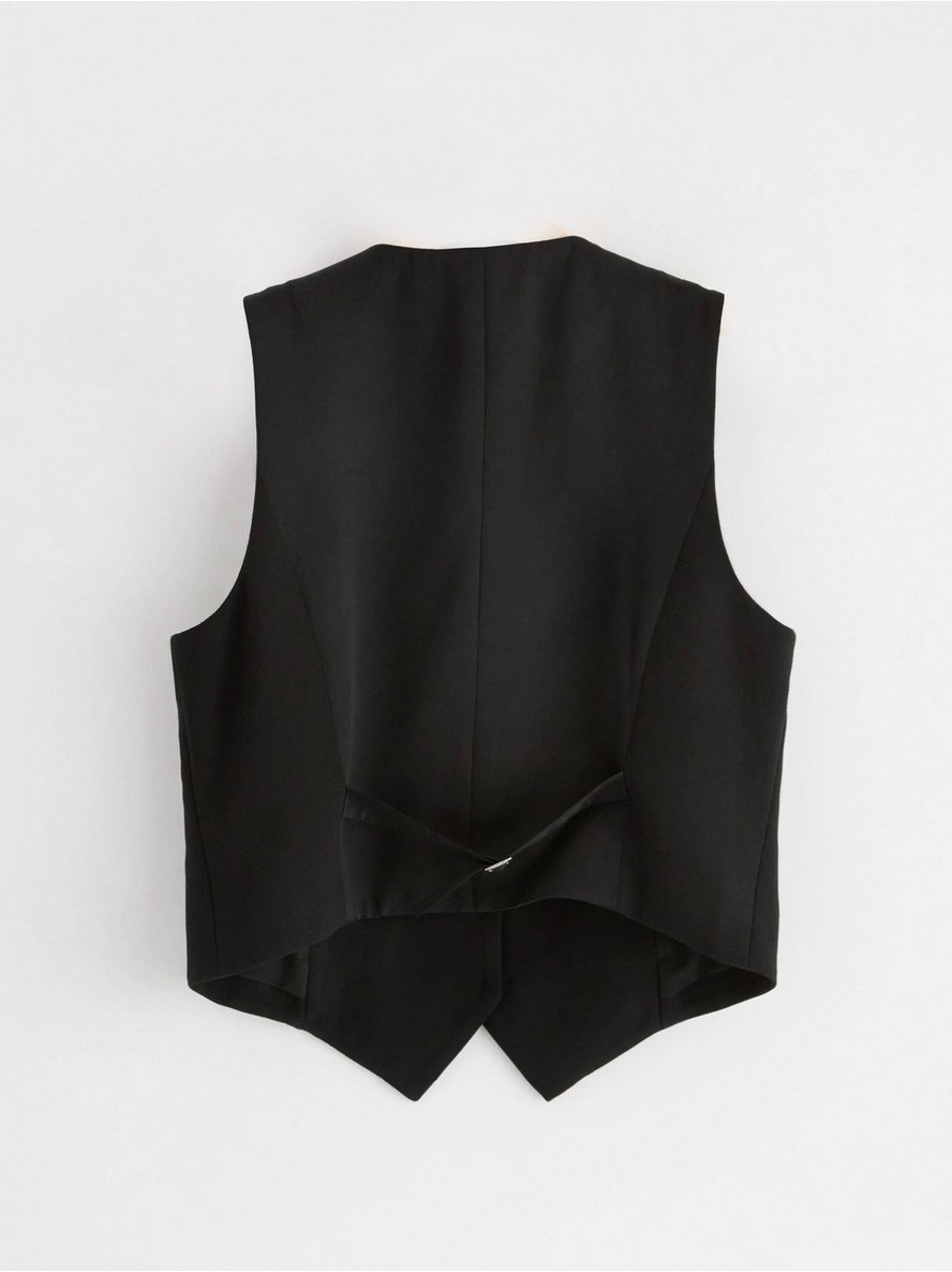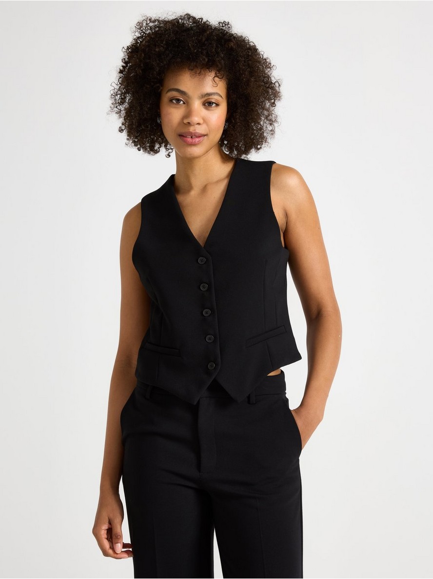 Klasičan prsluk sa kopčanjem sprijeda i V-izrezom.