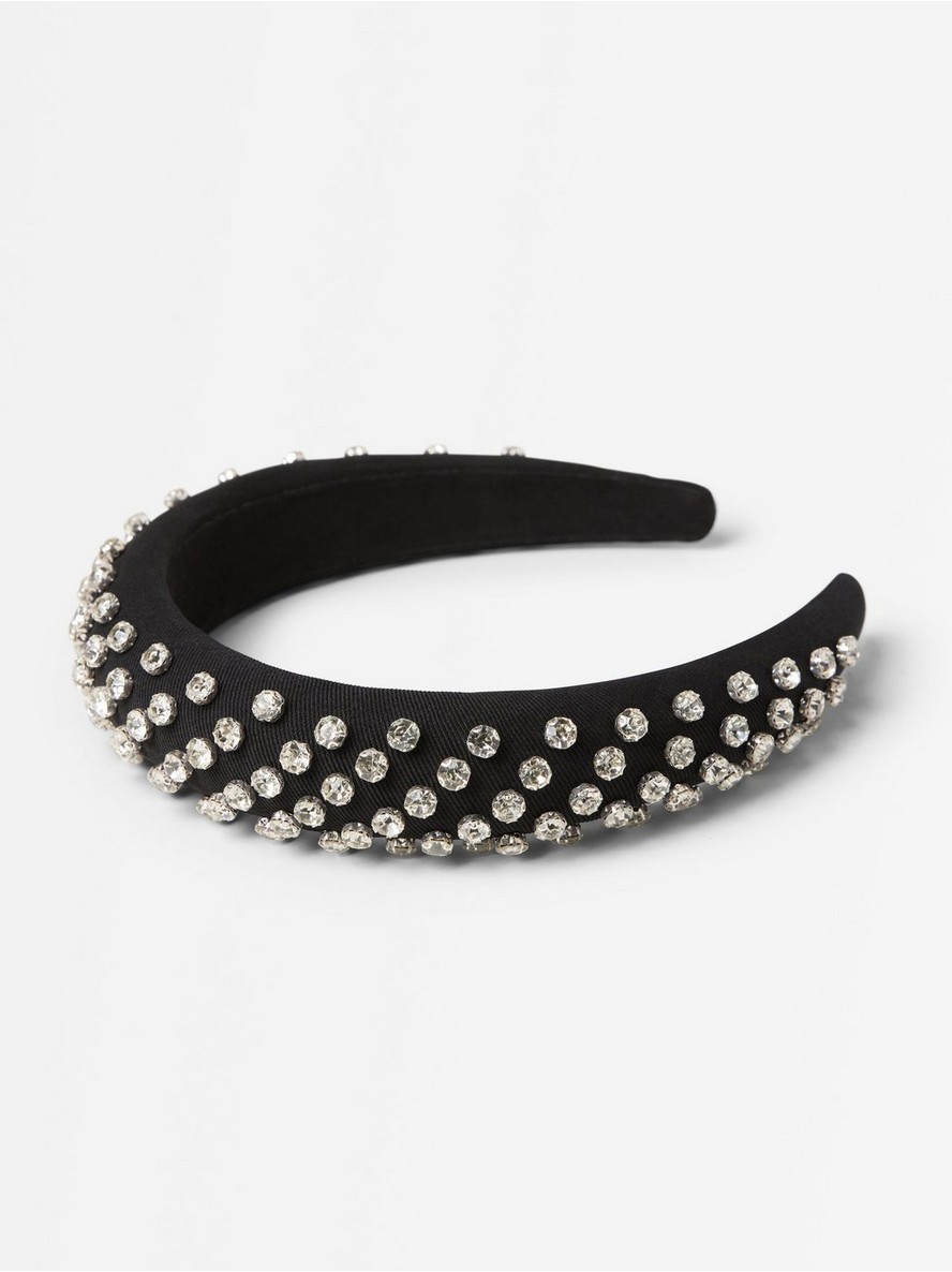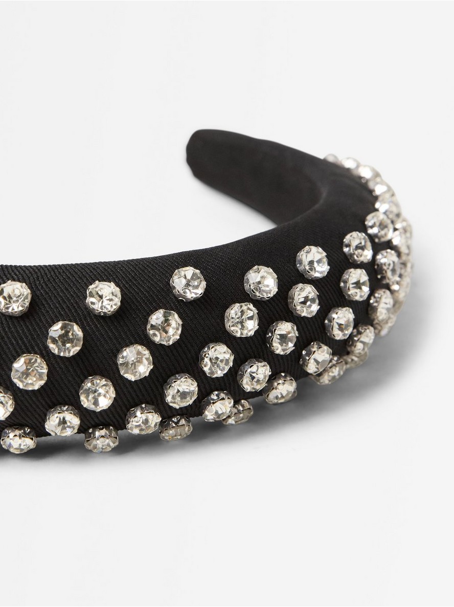 Obložena traka za kosu sa štras kamenčićima za elegantan završetak.