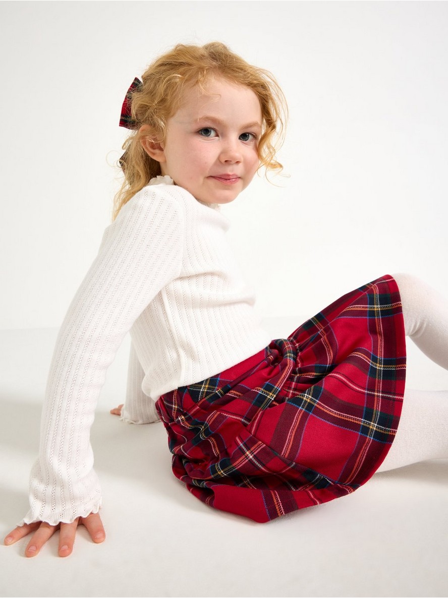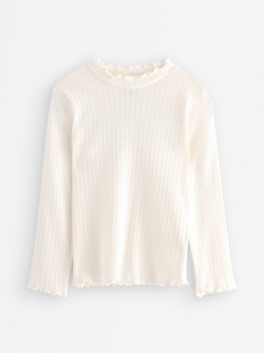 Top s dugim rukavima od mekanog pamučnog džerseja sa polurolkom i ukrasnim volanima.