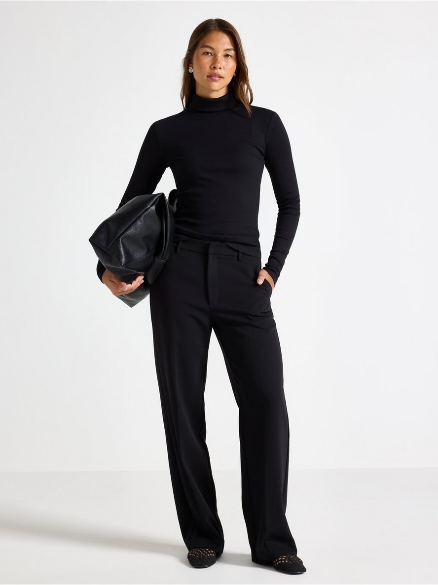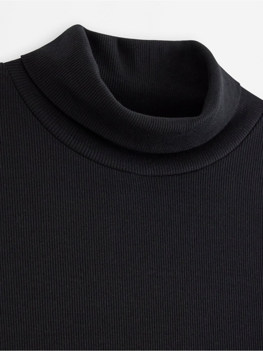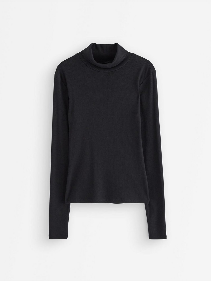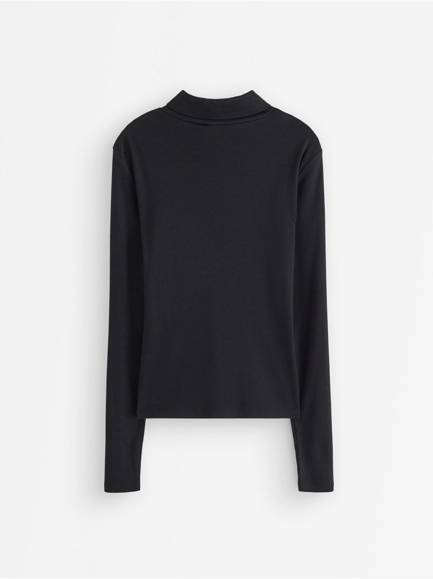 Mekana rebrasta majica sa dugim rukavima i polo-kragnom.
