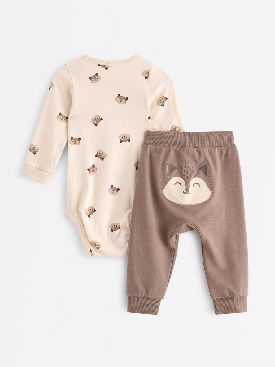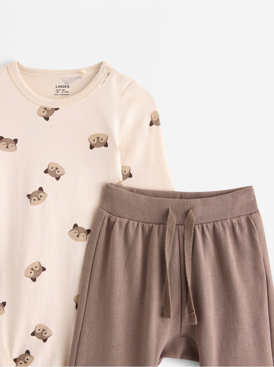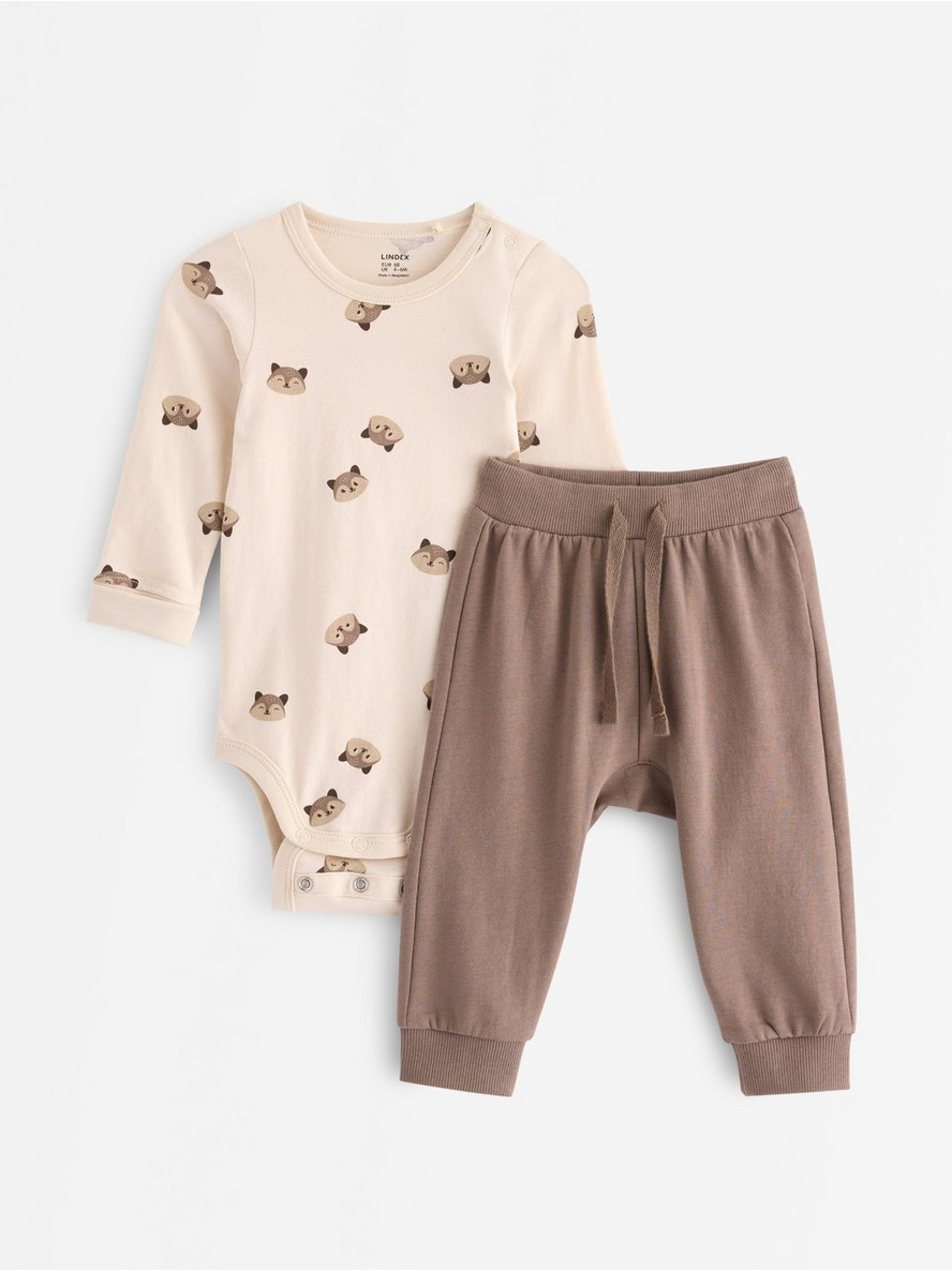 Usklađeni komplet od mekog pamuka sa bodijem dugih rukava i udobnim jogger pantalonama. Zahvaljujući našem pametnom rešenju Extended size, beba može porasti za jednu veličinu, a da i dalje nosi isti komad.