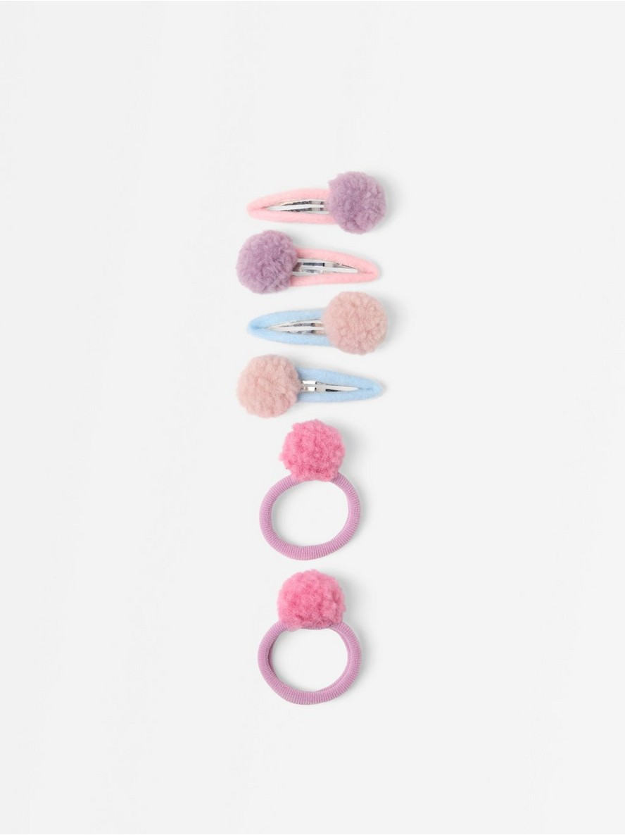 Praktičan set za kosu od 6 delova: četiri ukosnice i dve gumice za kosu.