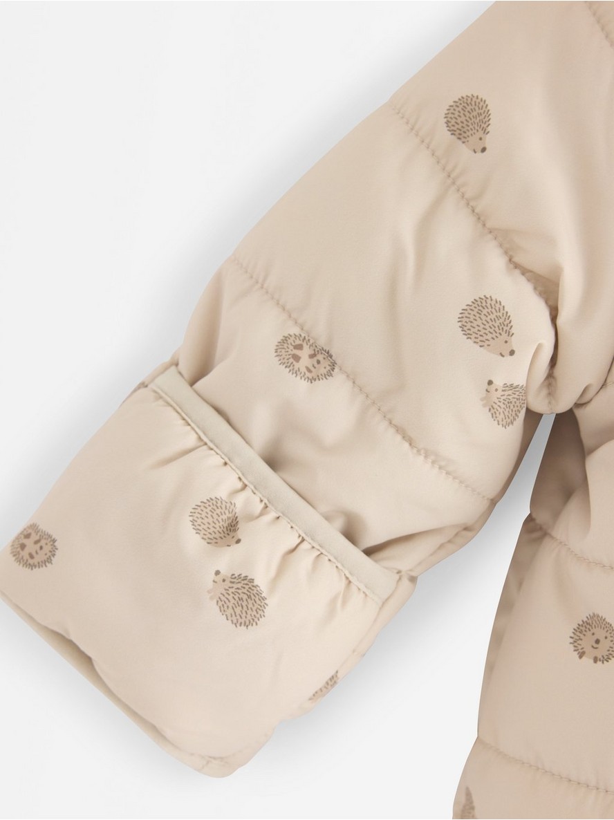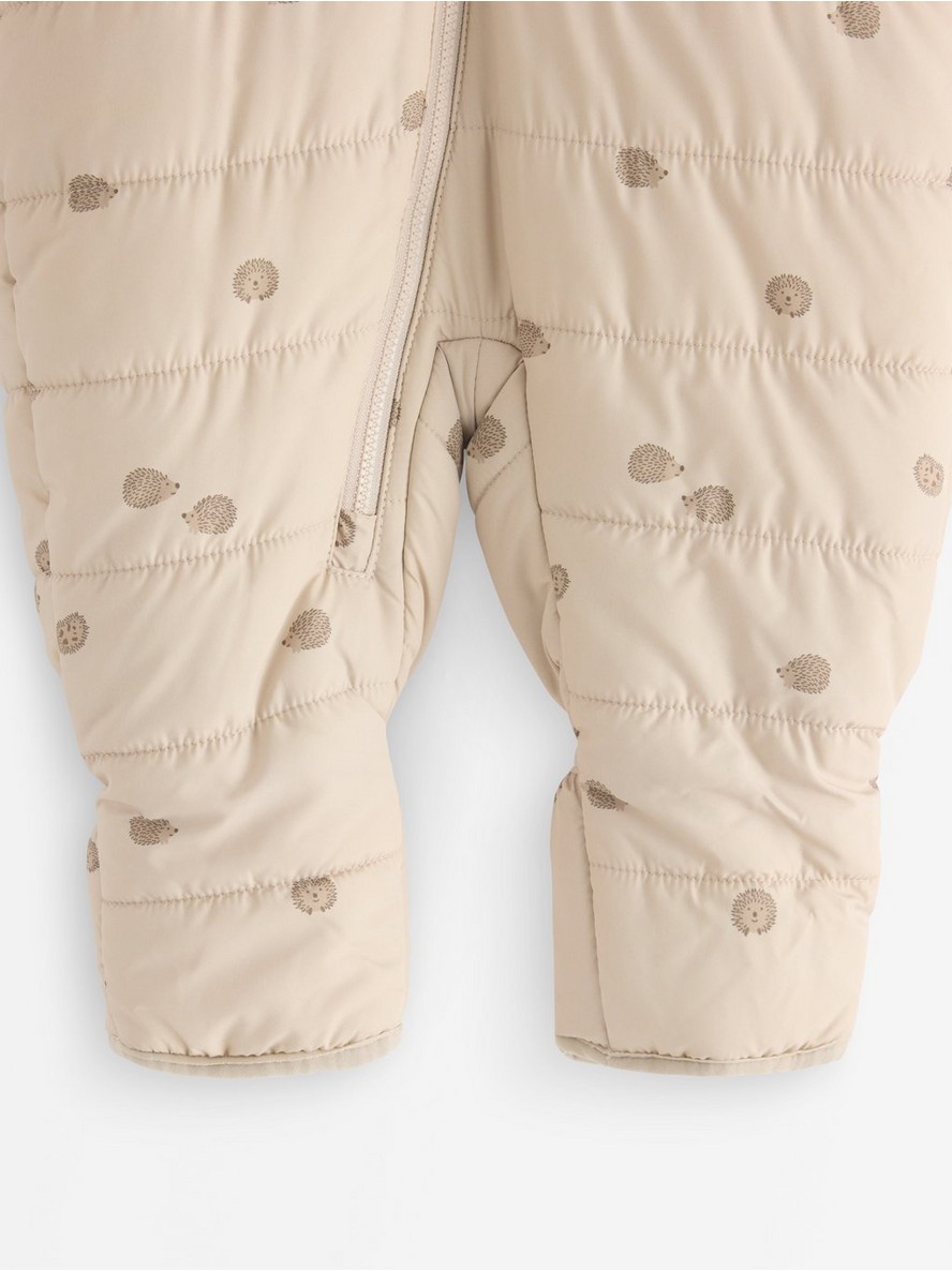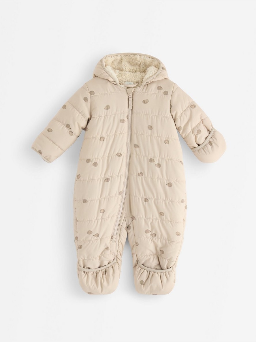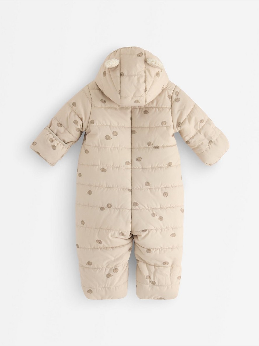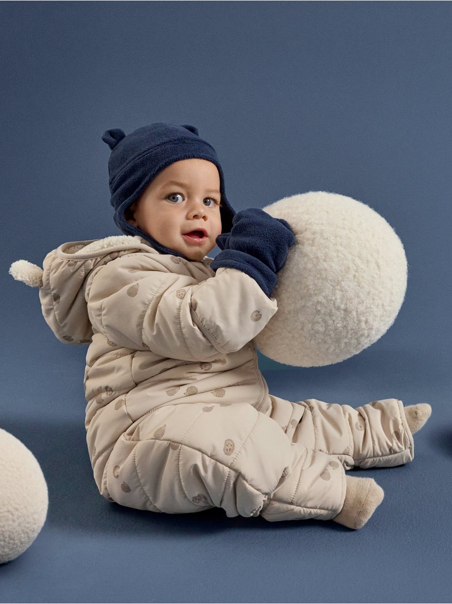 Meko podstavljeni zimski skafander sa slatkim malim ušima na vrhu kapuljače i flis postavom. Takođe dolazi sa ugrađenim preklopnim rukavicama i navlakama za stopala, što ga čini savršenim za održavanje malih ručica i stopala toplim kada je napolju hladno.