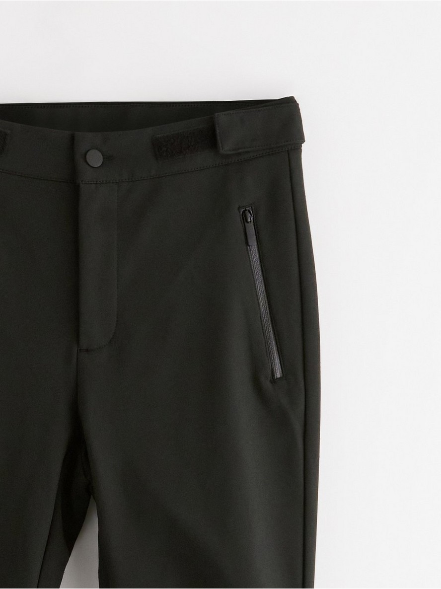 Skijaške pantalone od softshell materijala sa pripijenim krojem i rajsferšlusima na zadnjem delu nogavica. Pantalone imaju čičak sa strane pojasa za podešavanje veličine i šavove u predelu kolena za udobnost i pokretljivost.