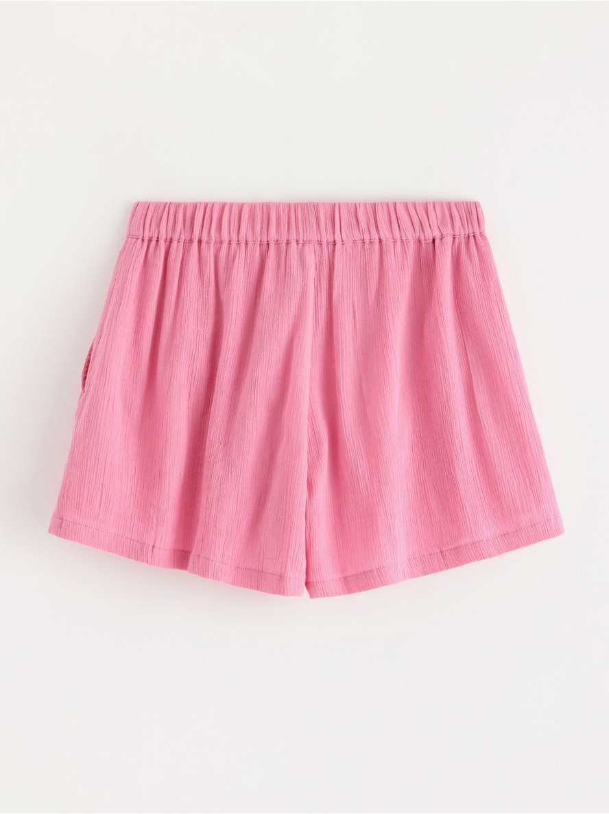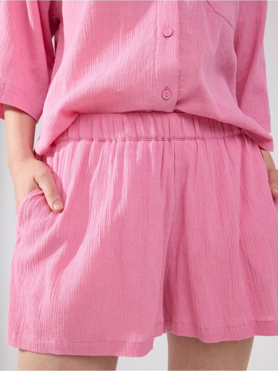 Kratke pantalone od naboranog pamuka sa regularnim strukom i bočnim džepovima.
