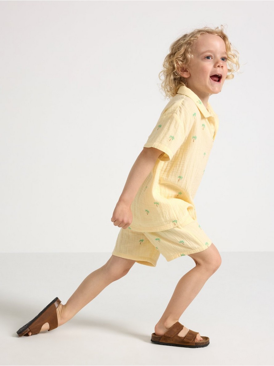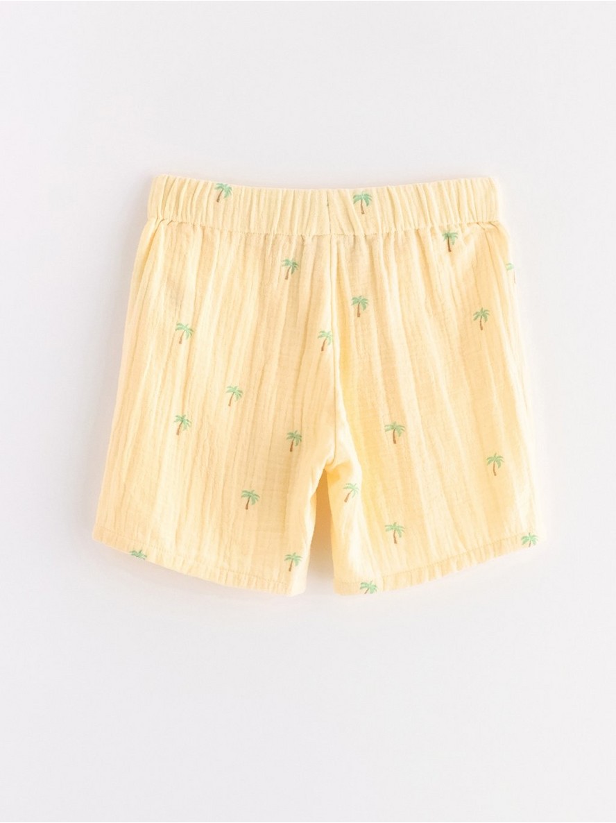 Udobne kratke pantalone od meke pamučne gaze, sa elastičnim strukom i uzorkom po celoj površini.