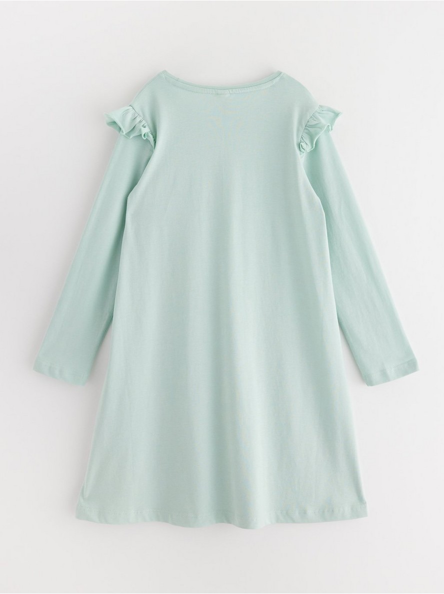 Udobna spavaćica od mekanog pamuka sa dugim rukavima i malim volanima na ramenima.