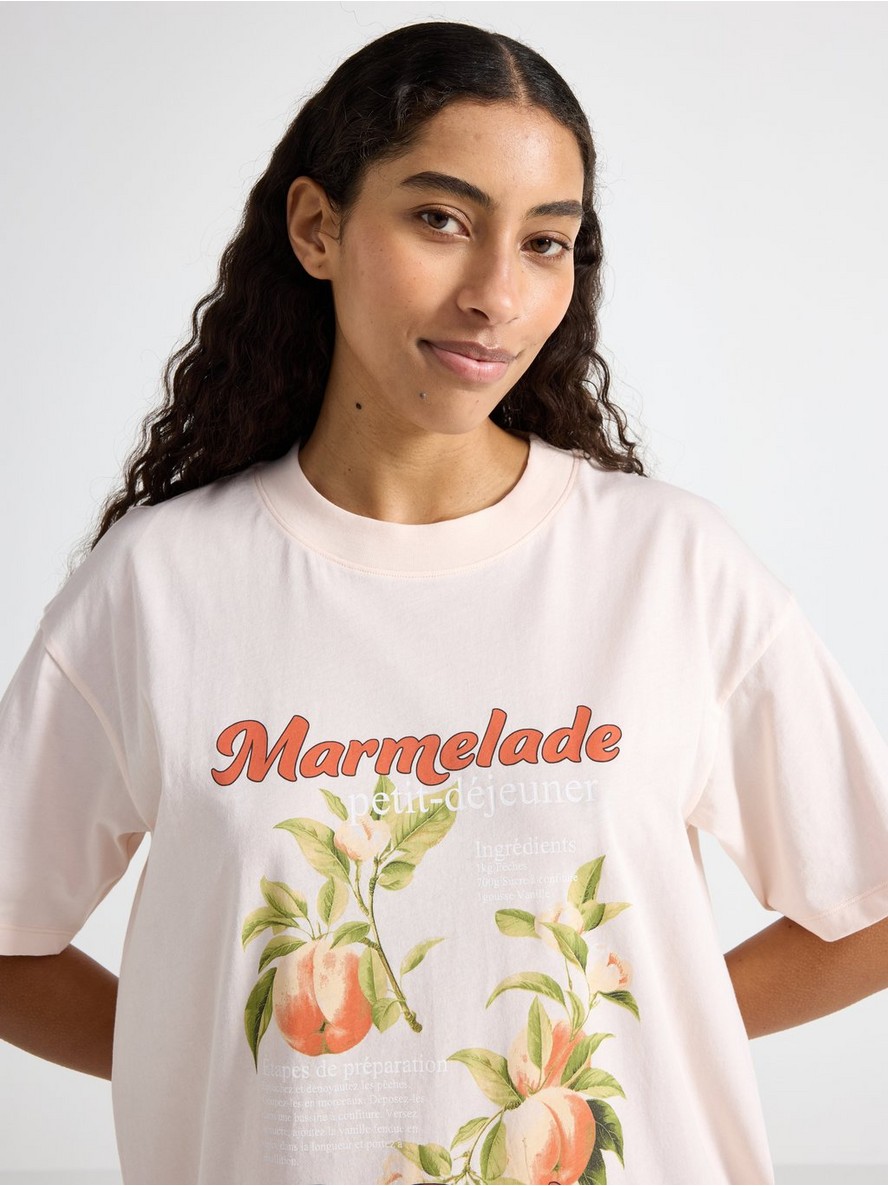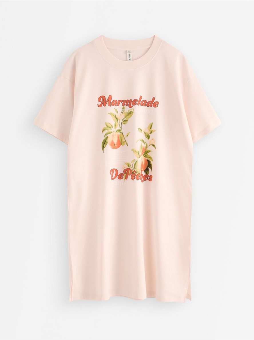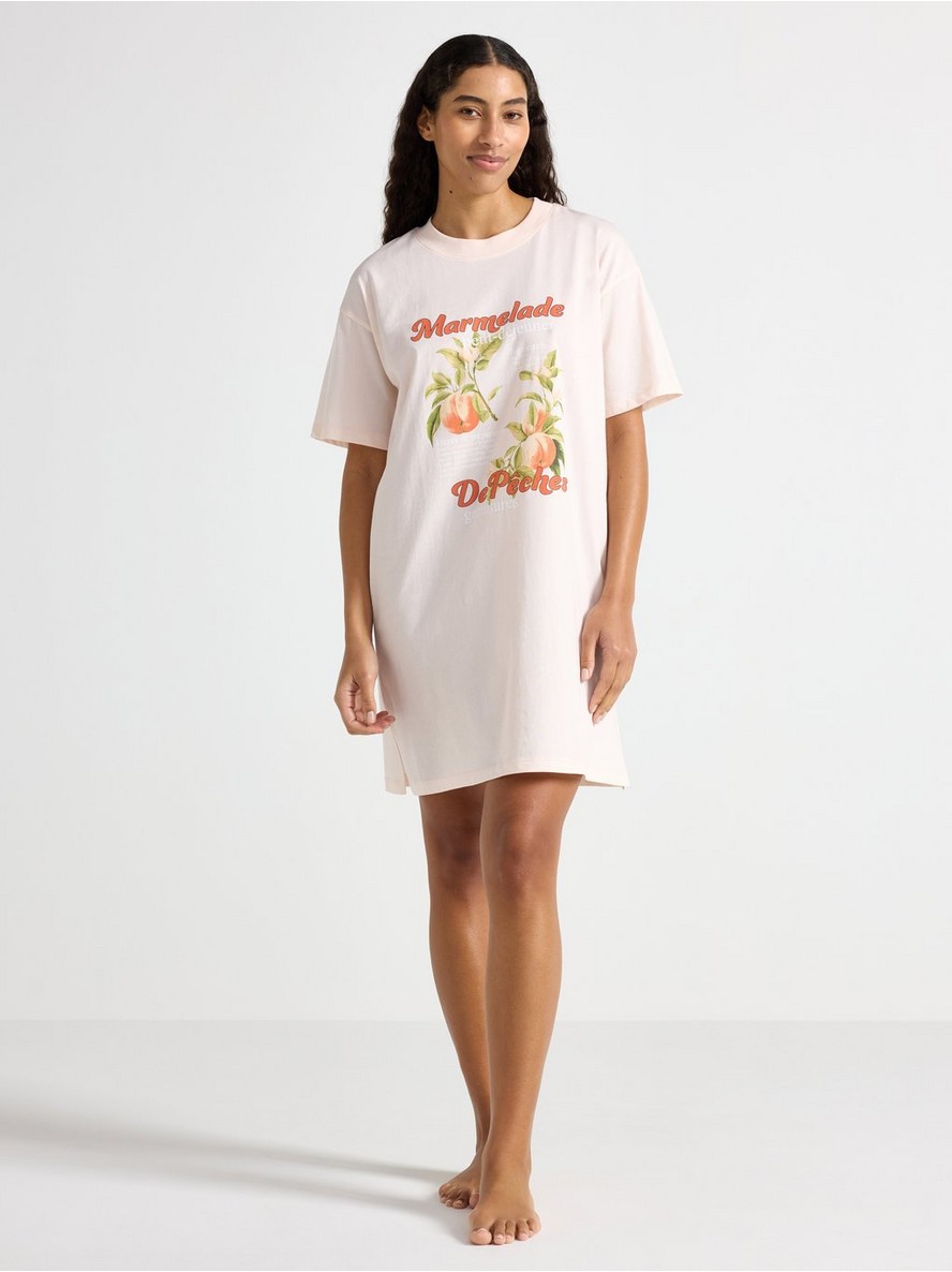 Noćna haljina kratkih rukava od mekog pamuka sa ravnim, opuštenim krojem i printom na prednjem delu.