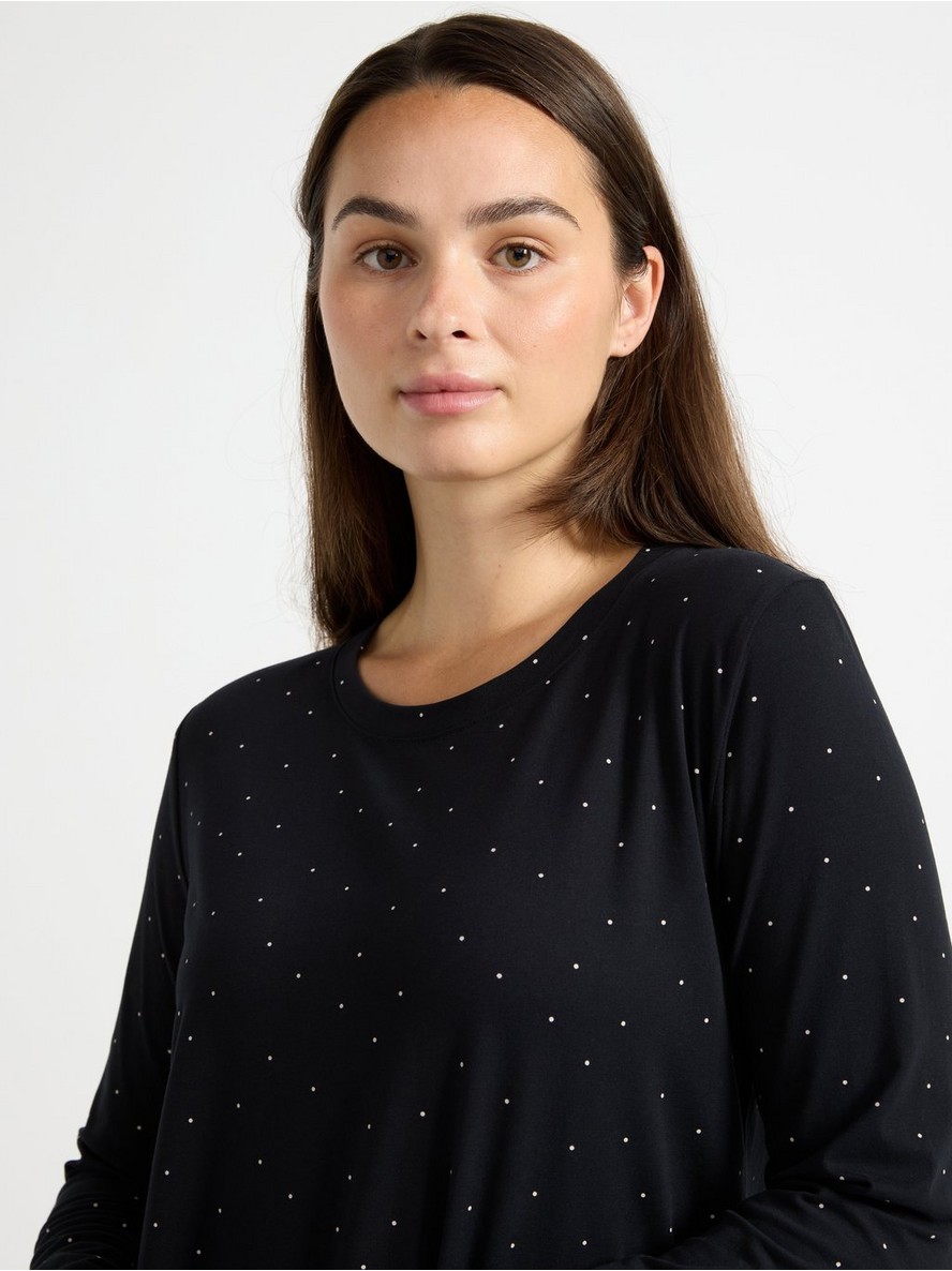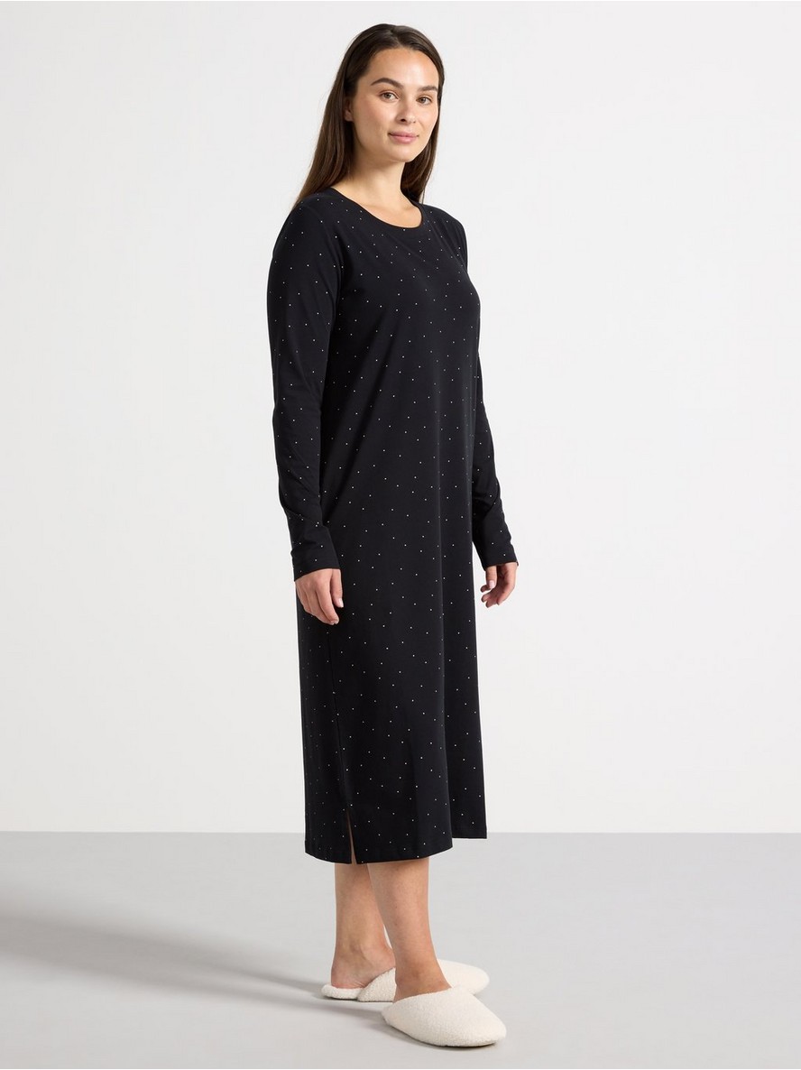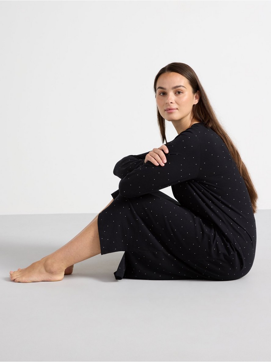 Noćna košulja sa dugim rukavima od mekanog i rastegljivog pamuka, ravnog kroja.