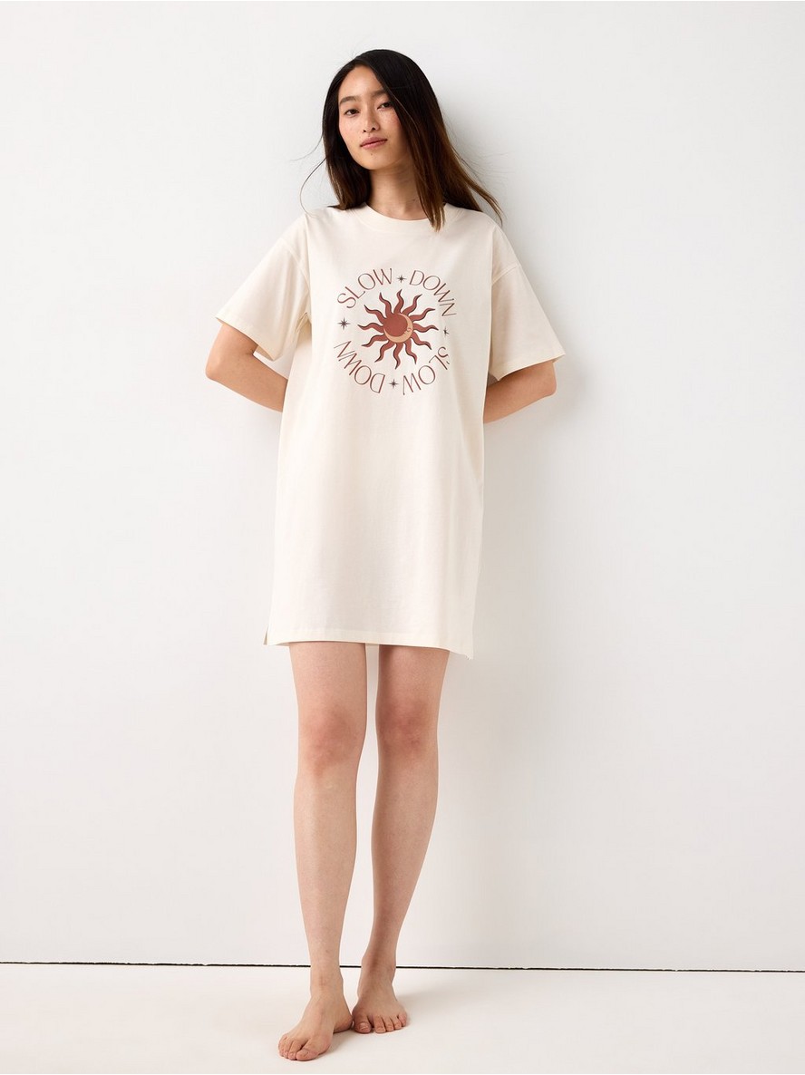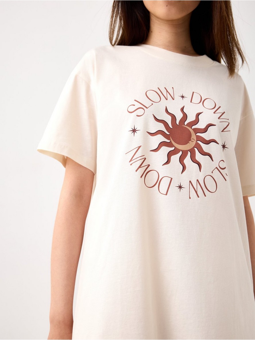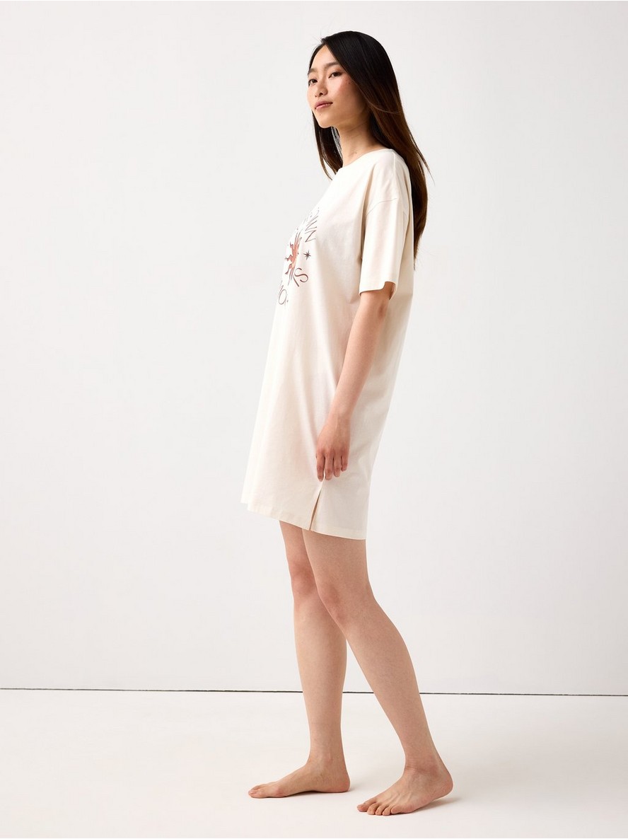 Spavaćica kratkih rukava od mekanog pamuka, sa ravnim, opuštenim krojem i printom napred.
