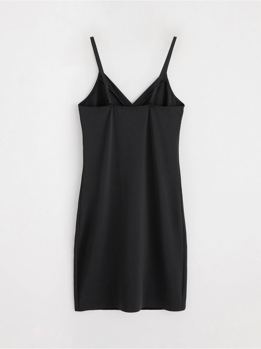 Istaknite svoju siluetu bez ugrožavanja udobnosti uz ovu oblikujuću haljinu. Elastični materijal oblikuje figuru, a haljina ostaje na mestu tokom celog dana zahvaljujući silikonskom rubu na donjem porubu.