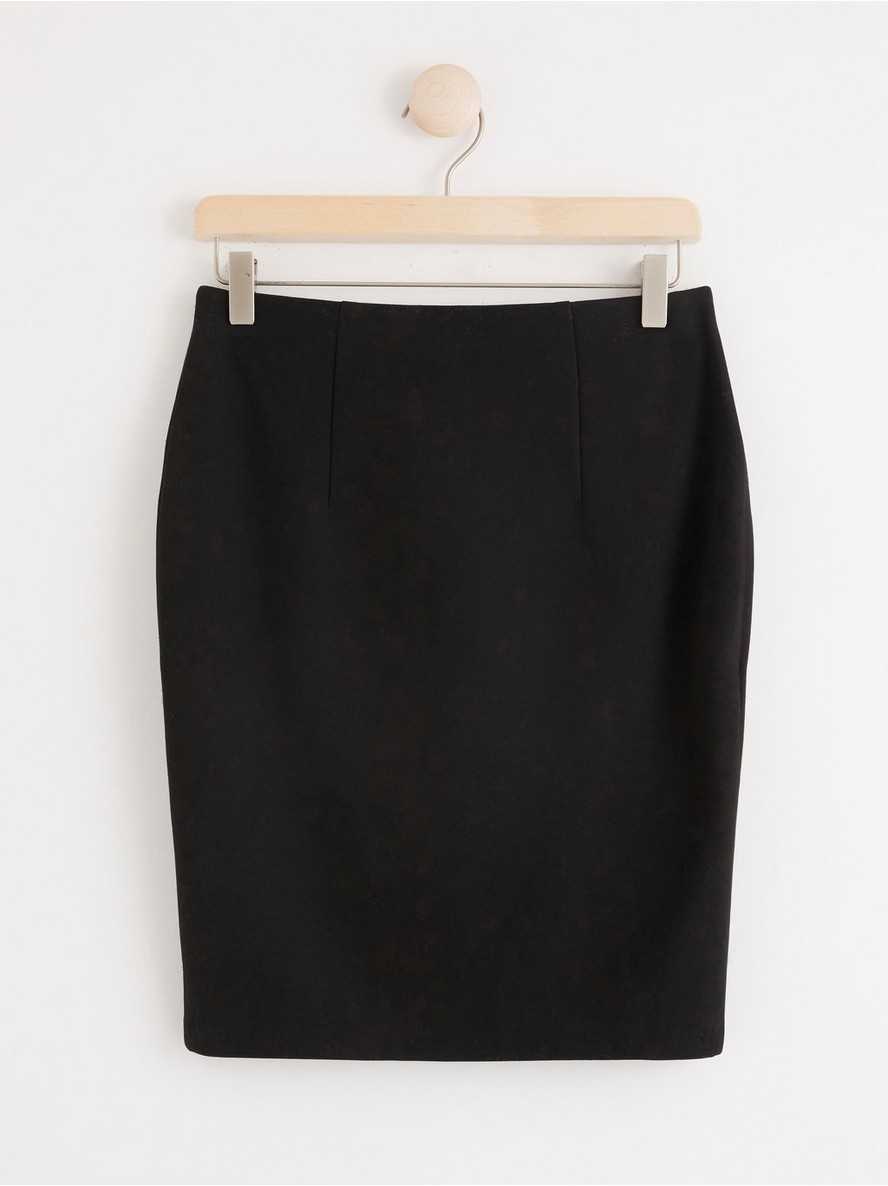 Elegantna crna džersej suknja, rastegljiva sa elastičnim strukom. Tkanina je napravljena od 67% LENZING™ ECOVERO™ viskoze, održivije opcije u poređenju sa konvencionalnom viskozom.