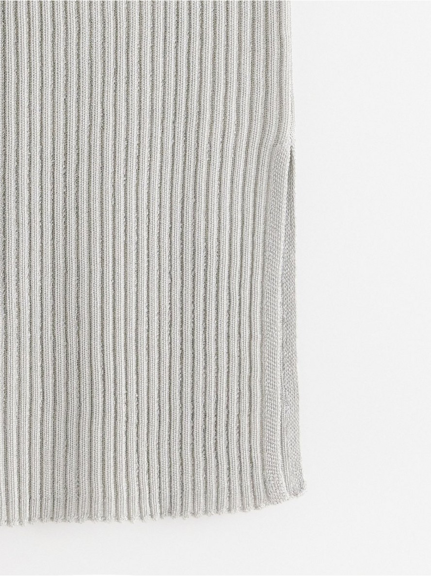 Elegantna, rebrasto pletena suknja u midi dužini.