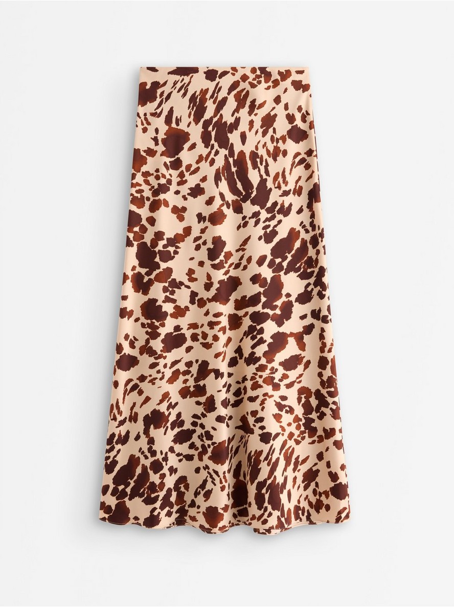Elegantna maxi suknja od satena sa skrivenim elastičnim pojasom.