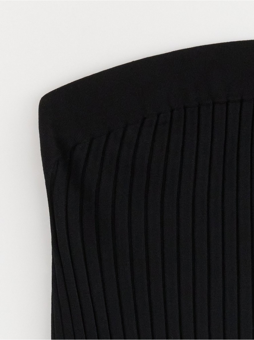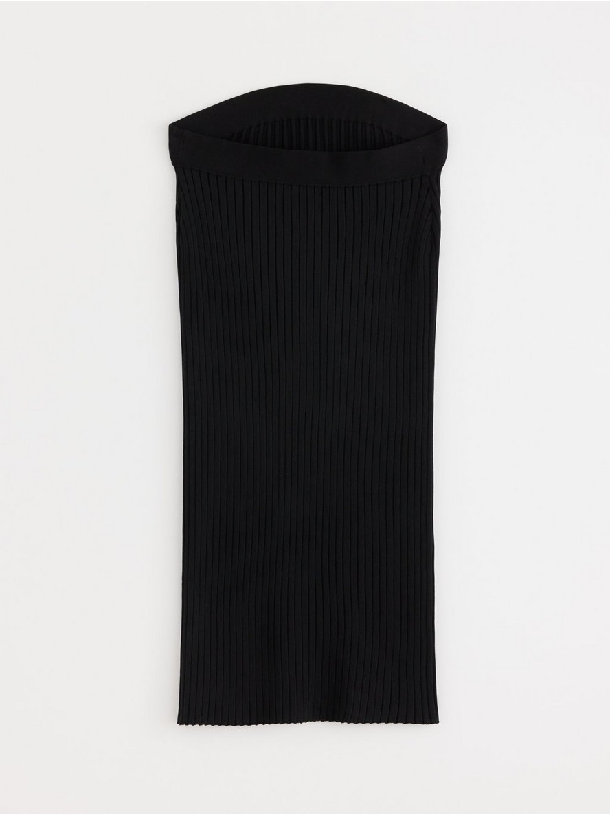 Rebrasta midi suknja sa dodatnim prostorom za rastući stomak.