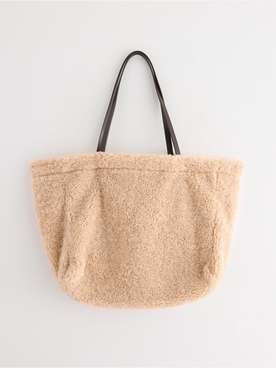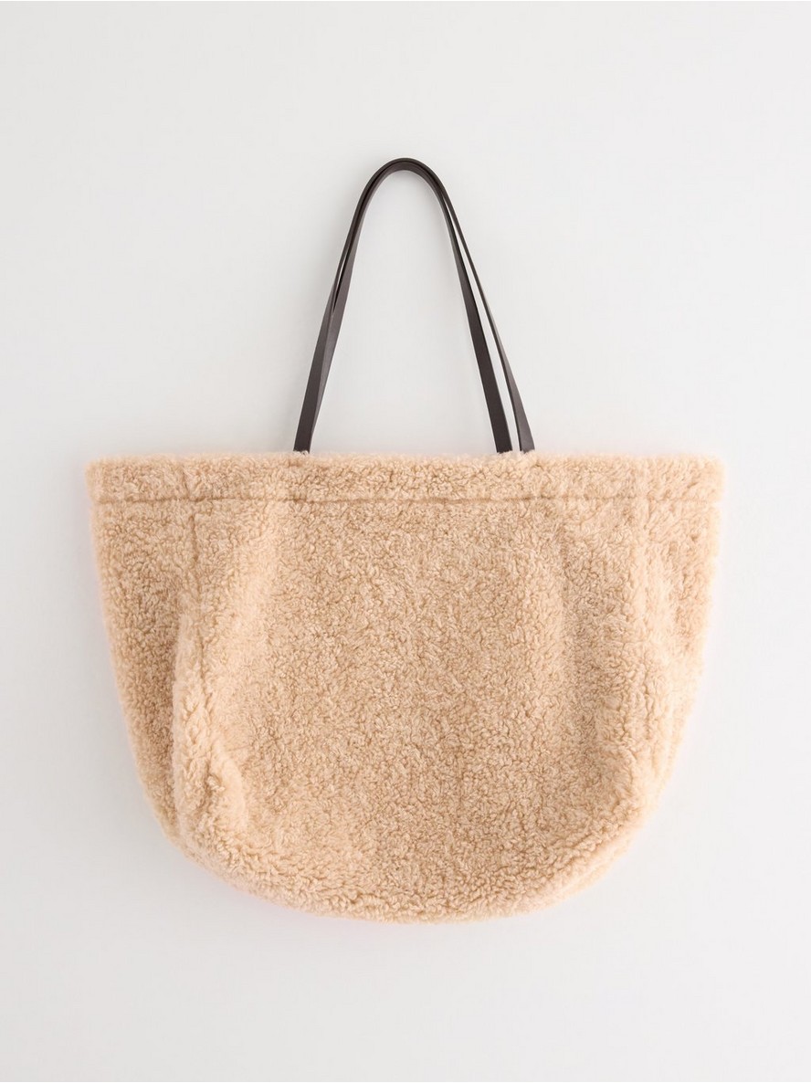 Prostrana torba od veštačkog krzna sa naramenicama od eko-kože.