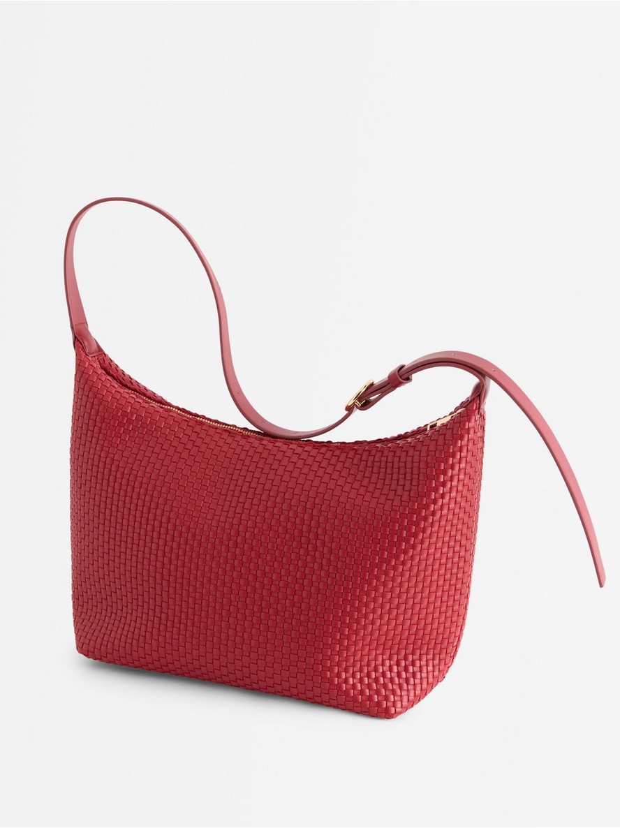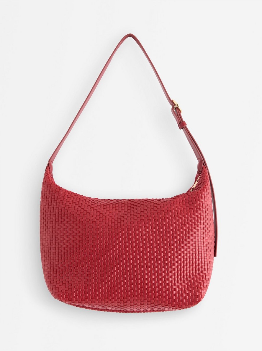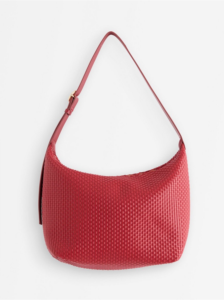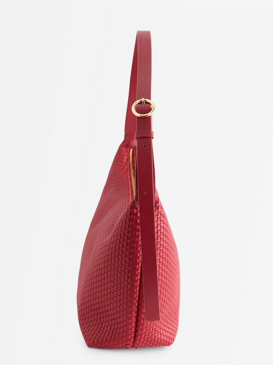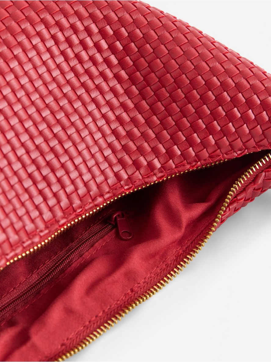 Torba od imitacije kože sa pletenim dezenom po celoj površini.