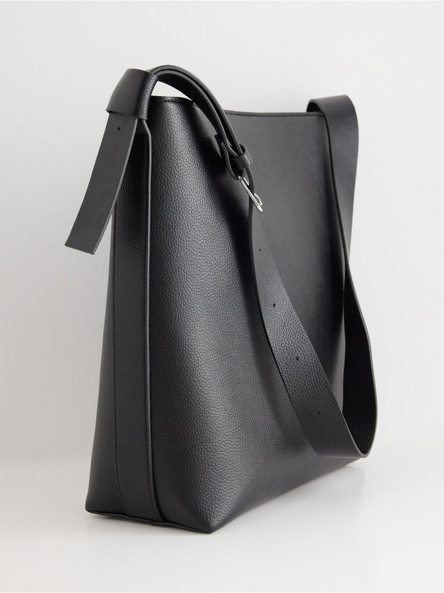 Velika shopper torba od imitacije kože sa podesivim remenom.